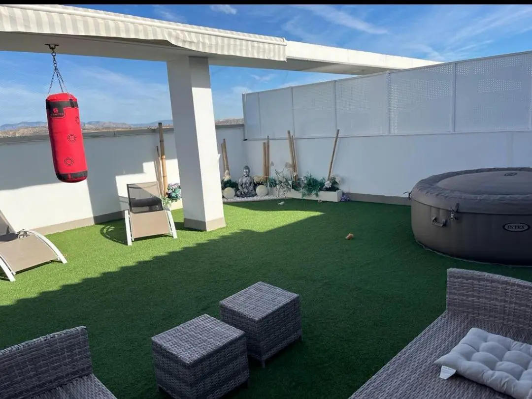 Descubre este espectacular ático ubicado en una de las mejores urbanizaciones de Elche, que combina estilo moderno y comodidad. Este inmueble cuenta con una amplia terraza ideal para disfrutar del sol y organizar reuniones al aire libre. La construcción es reciente, datando de 2019, asegurando un diseño actual y funcional adaptado a todas tus necesidades. Además, la urbanización ofrece acceso a una refrescante piscina comunitaria rodeada por zonas ajardinadas perfectas para relajarse. Con ascensor desde el garaje hasta tu hogar, olvídate de cargar pesados objetos; cada detalle ha sido pensado para ofrecerte confort absoluto. Complementa esta oferta su útil trastero que proporciona espacio adicional para almacenamiento. Una oportunidad única si buscas calidad de vida en un entorno privilegiado.
