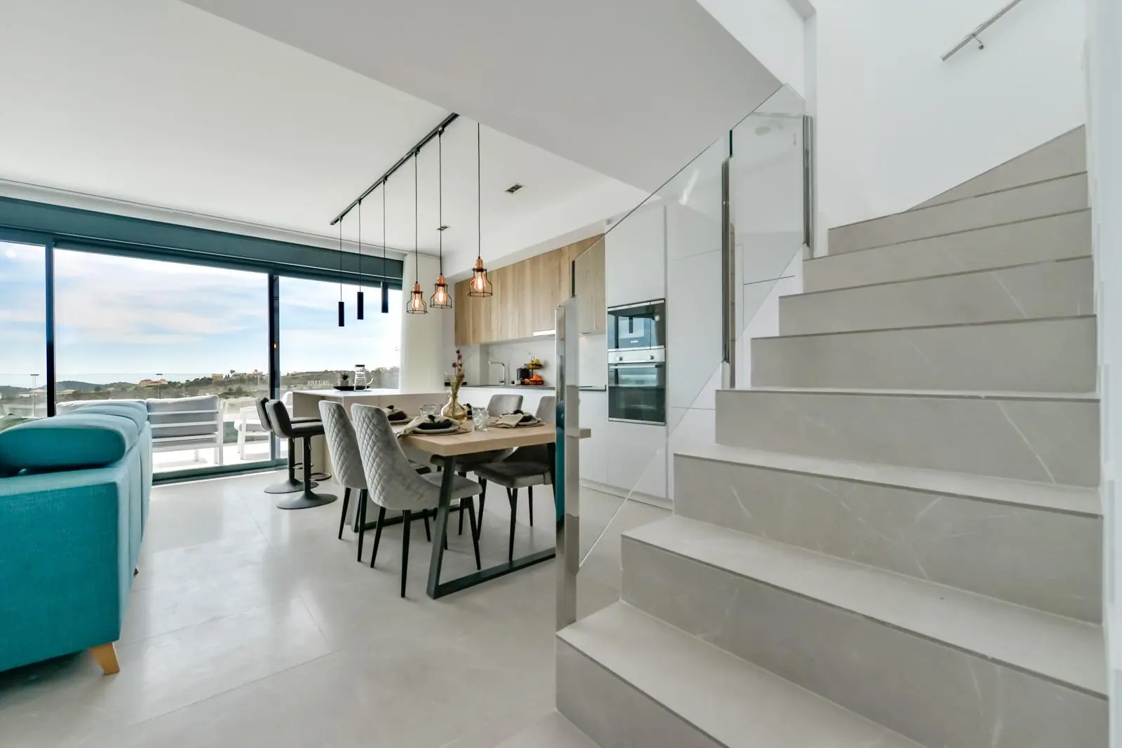 1. Piso → Ático Dúplex en Finestrat zona Balcón de Finestrat, 2 habitaciones dobles y una habitación sencilla, 2 baños, un aseo, propiedad en Obra Nueva, cocina equipada, carpintería interior de aluminio, orientación norte sur, suelo de baldosa, carpintería exterior de aluminio / climalit.~Extras: acceso pmr, agua, aire acond. central, armarios empotrados, ascensor, balcón, gimnasio, hidromasaje, jardín, luminoso, piscina comunitaria, solárium, terraza, trastero, árboles, centros comerciales, urbanización, vigilancia 24h, vistas despejadas, zonas infantiles, garaje incluido~