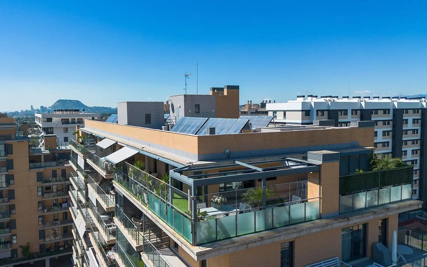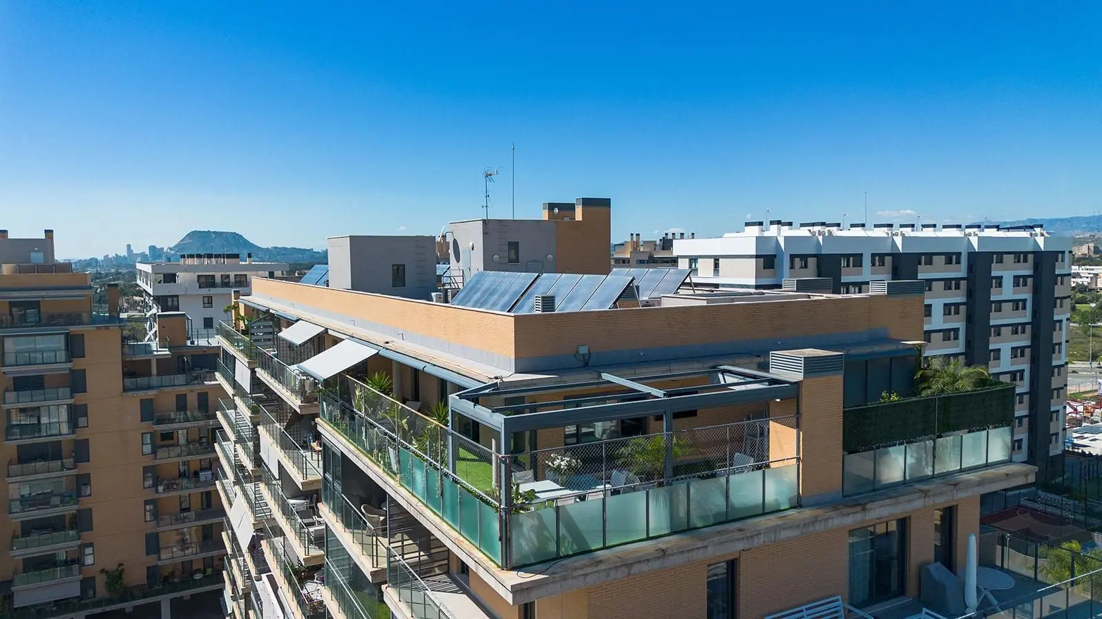 Imagine waking up every morning to the blue of the Mediterranean on the horizon and sunlight flooding every corner of your home. This is a spectacular ninth-floor penthouse, located in the Residencial San Juan, in the PAU 5 area on Avenida Maestro José Garberí. This property is a sanctuary of peace and light in one of Alicante’s sought-after and exclusive areas. Thanks to its south-facing orientation, this property receives natural light. It is a fully exterior home designed to maximize natural ventilation and brightness all year round. Access to the apartment is through a private landing exclusive to this unit, allowing for a practical space for shoes or small items.