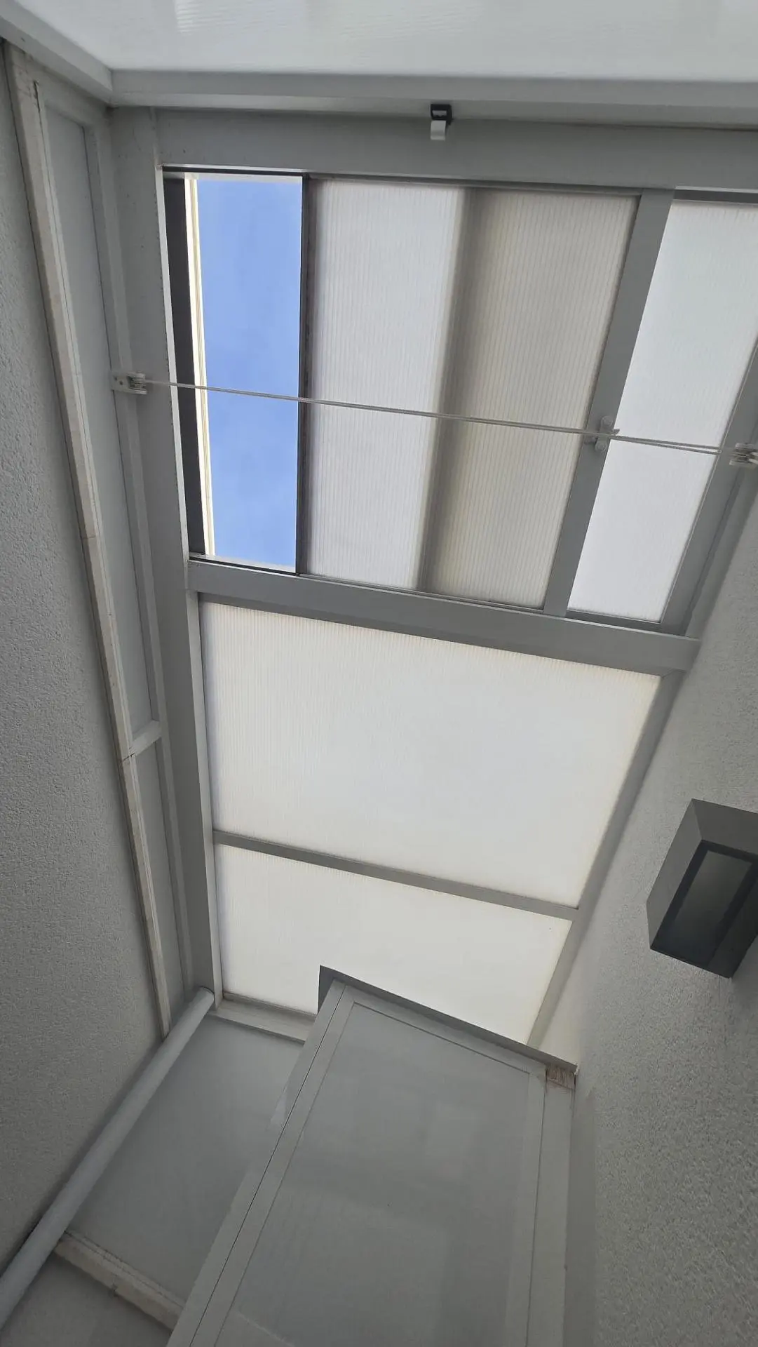 The house features two spacious bedrooms, both with built-in wardrobes. The master bedroom has its own ensuite bathroom, and there is also a second, full bathroom. Behind the ensuite bedroom is a patio that is fully enclosed, but with an opening roof. The washing machine and boiler are also neatly concealed in a separate closet.