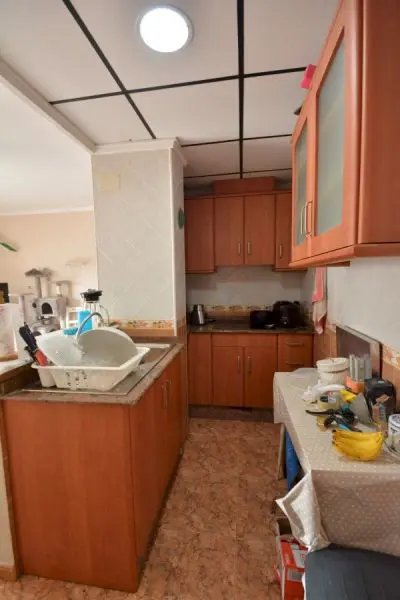 This apartment is situated in calle Lepanto, only 600 meters from the central beach of Guardamar del Segura. Walking distance to all amenities. 3 – apartment building without elevator. This apartment has a total constructed area of 81 m2 according to land registry and 30 m2 of uncovered terrace facing South. 2 bedrooms, 1 large bathroom, cozy living room with fireplace and open kitchen. The building was constructed in 1980, but the flat was recently renovated. Large closed garage (98m2) for up to 4 cars is included in the price. Part of it could be used as a large storage. Taxes and purchase expenses are not included in the price. There is a possibility to purchase a garage for up to 3 cars in the same building. Please feel free to contact us to request more information or to book a viewing.