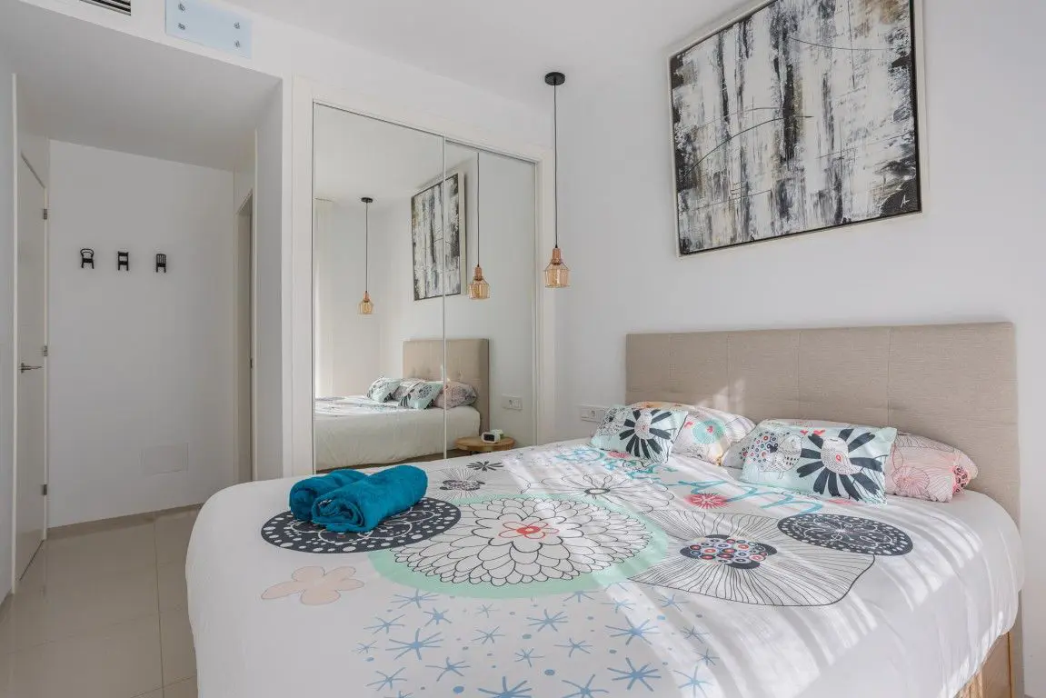 Located in a stunning setting along one of the most beautiful coasts of Spain – the Costa Blanca South – in the picturesque town of Rojales/Quesada. Just a short distance from the seaside resort of Torrevieja and close to the charming Guardamar del Segura with its famous sandy beaches. The accessibility of Penthouse ‘Allegra’ is nothing short of excellent. Two airports are at your disposal: Alicante-Elche Airport and Murcia-Corvera Airport, located just 30 minutes and one hour away, respectively. Penthouse ‘Allegra’ is, of course, fully equipped and features a modern interior design that meets today`s standards. It is truly fitted with every comfort and offers a particularly pleasant and welcoming ambiance where you will immediately feel at home. The penthouse features, among other things: Two spacious, fully furnished bedrooms, two modern bathrooms, a fully equipped kitchen, a large living room with very comfortable furniture, two terraces, including a balcony with a table and four chairs, and an exceptionally large rooftop terrace of no less than 78 m2, offering stunning views of the lagoon and the beautifully landscaped garden with three large communal swimming pools, a children`s playground, fitness facilities, and free tennis courts nearby. The generous and comfortable rooftop terrace includes: A spacious dining table with six chairs under a retractable awning, a cozy lounge set, sun loungers, a complete outdoor kitchen with a barbecue, refrigerator, and sink, as well as an outdoor shower with hot and cold water. Additionally, the penthouse offers secure outdoor parking with three electric gates and a private parking space.
