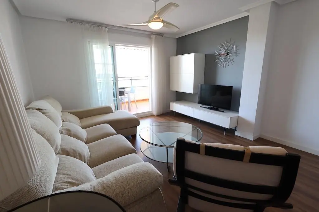 Mil Palmeras – Penthouse with Sea Views Just 150 Meters from the Beach. Located in the exclusive Río Mar XI residential complex, this bright south-facing penthouse enjoys a privileged location just 150 meters from the sea. The property offers 98 m2 distributed across 2 bedrooms, a full bathroom, an open-plan kitchen, and a spacious living-dining area with access to a terrace boasting stunning sea views. It includes a spectacular private solarium of 59 m2, fully equipped with a barbecue area, shower, storage room, and awnings — perfect for enjoying the Mediterranean climate all year round. The property is sold fully furnished with air conditioning and includes a large parking space and a storage room in the price. The residential complex features beautifully landscaped gardens, a children’s play area, tennis court, and a stunning communal swimming pool with direct access to the beach. An excellent opportunity as a permanent residence, holiday home, or investment in one of the most sought-after areas of the Costa Blanca.