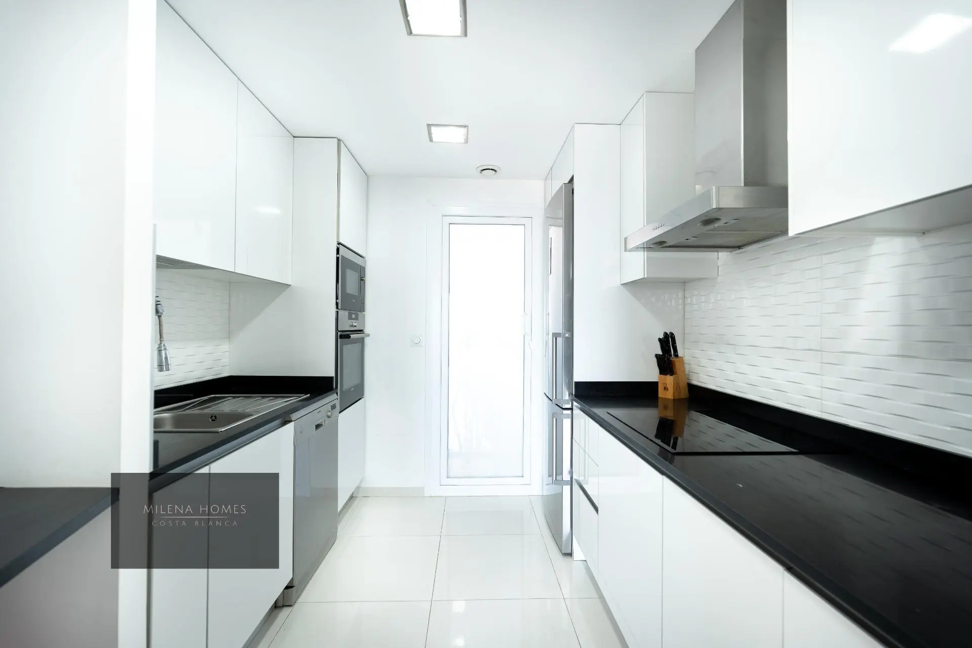 Exclusive 124 m2 penthouse located on the front line of the sea, within the prestigious Sea Senses residential complex in Punta Prima (Torrevieja). A unique property that combines design, comfort, and panoramic views of the Mediterranean Sea. The property features 3 bedrooms and 2 bathrooms, with a modern and bright layout. The open-plan living and dining area opens onto a terrace with direct sea views, ideal for enjoying the Mediterranean climate all year round. The fully fitted kitchen offers high-quality finishes and excellent functionality. Situated on the 9th floor, this penthouse guarantees privacy, natural light, and unobstructed views. It includes a private parking space and is part of a residential complex offering infinity swimming pools, landscaped gardens, gym, spa, 24-hour security, and direct access to the seafront promenade. An unbeatable location, just steps from the beach, restaurants, and all amenities, with excellent transport connections. Ideal as a permanent residence, a second home, or an investment.