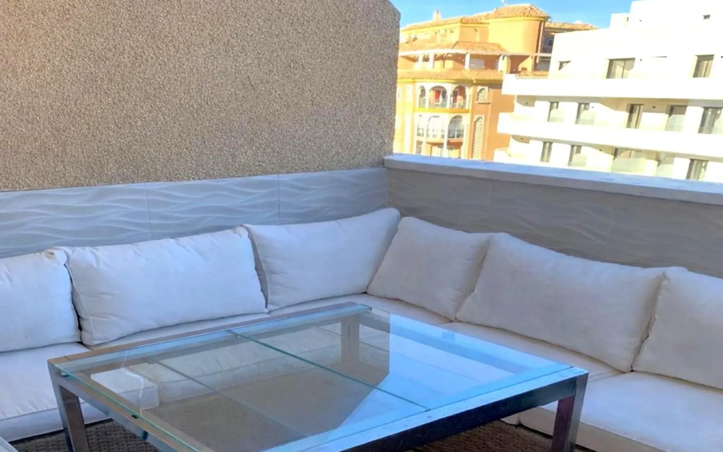 BRIGHT PENTHOUSE IN THE CITY CENTER, JUST 350 METERS FROM THE BEACH A home where you immediately feel space, light, and the vibrant coastal city lifestyle. This 89 m2 penthouse is located right in the city center, with everything within walking distance — including the beach. The building was constructed in 2001, well maintained, with an elevator and a calm residential atmosphere — a rare find in central locations. Apartment features: Designed for comfortable living, without compromises. – 3 bedrooms, ideal for family living or guests – 2 modern bathrooms with showers – Fully equipped open-plan kitchen connected to the living room — the heart of the home – Spacious and very bright living area with an open, airy feel A true highlight is the large terrace overlooking Avenida Habaneras. Perfect for morning coffee, relaxed evenings, and enjoying the Mediterranean lifestyle. Location advantages: – Only 350 meters to the beach – City center location with shops, restaurants, cafés, pharmacies, and transport nearby – Excellent option for permanent living or rental investment Additional details: – Elevator in the building – Community fee: 100 € every six months This is a home for those who want city life close to the sea. For those who appreciate light, space, and unbeatable convenience. Contact us to learn more or arrange a viewing — we speak your language.