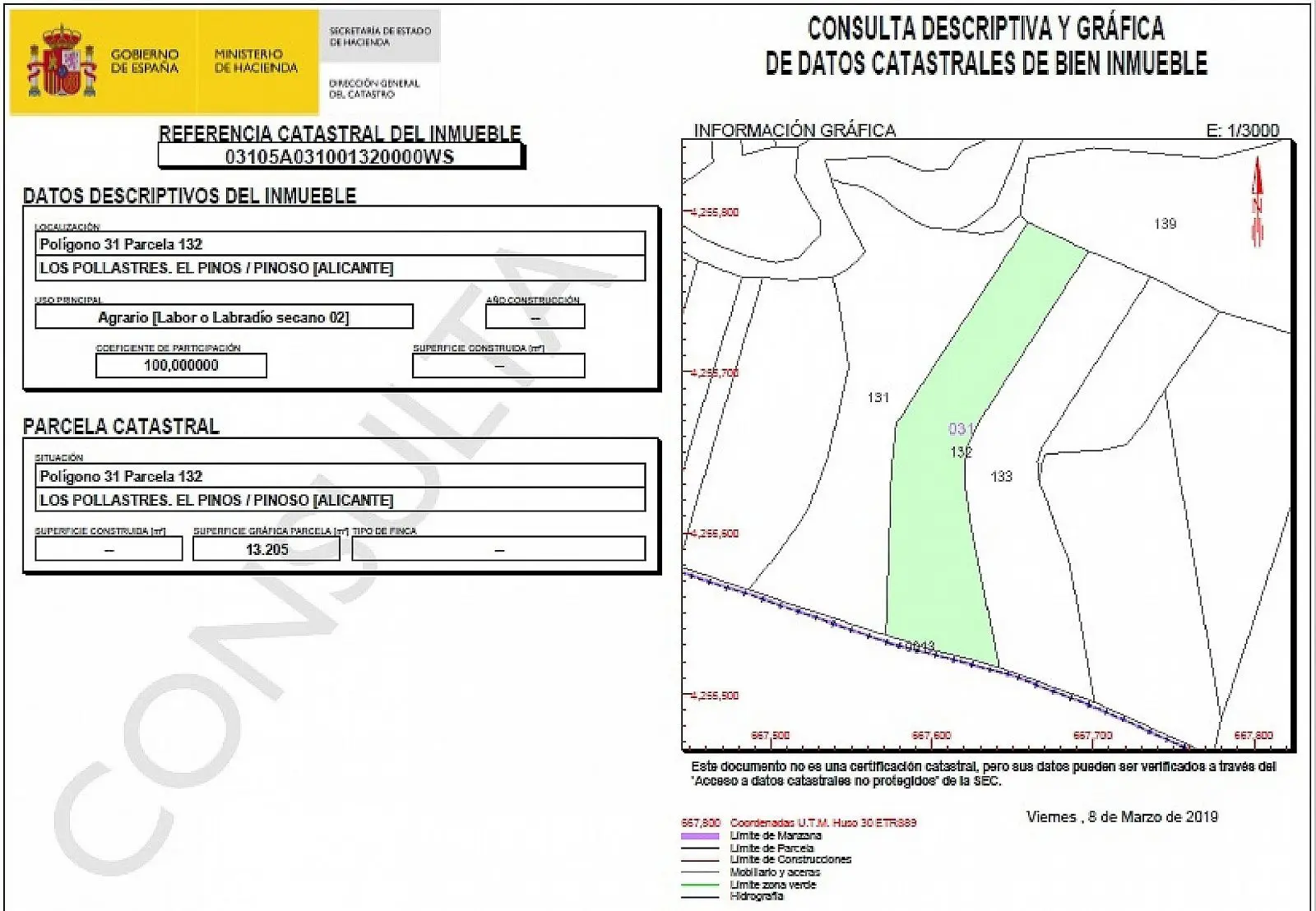 If you’re in search of a prime piece of land, consider this option in an appealing location. Located near Pinoso, this 13,200 square meter parcel offers opportunities for various uses and potential development.