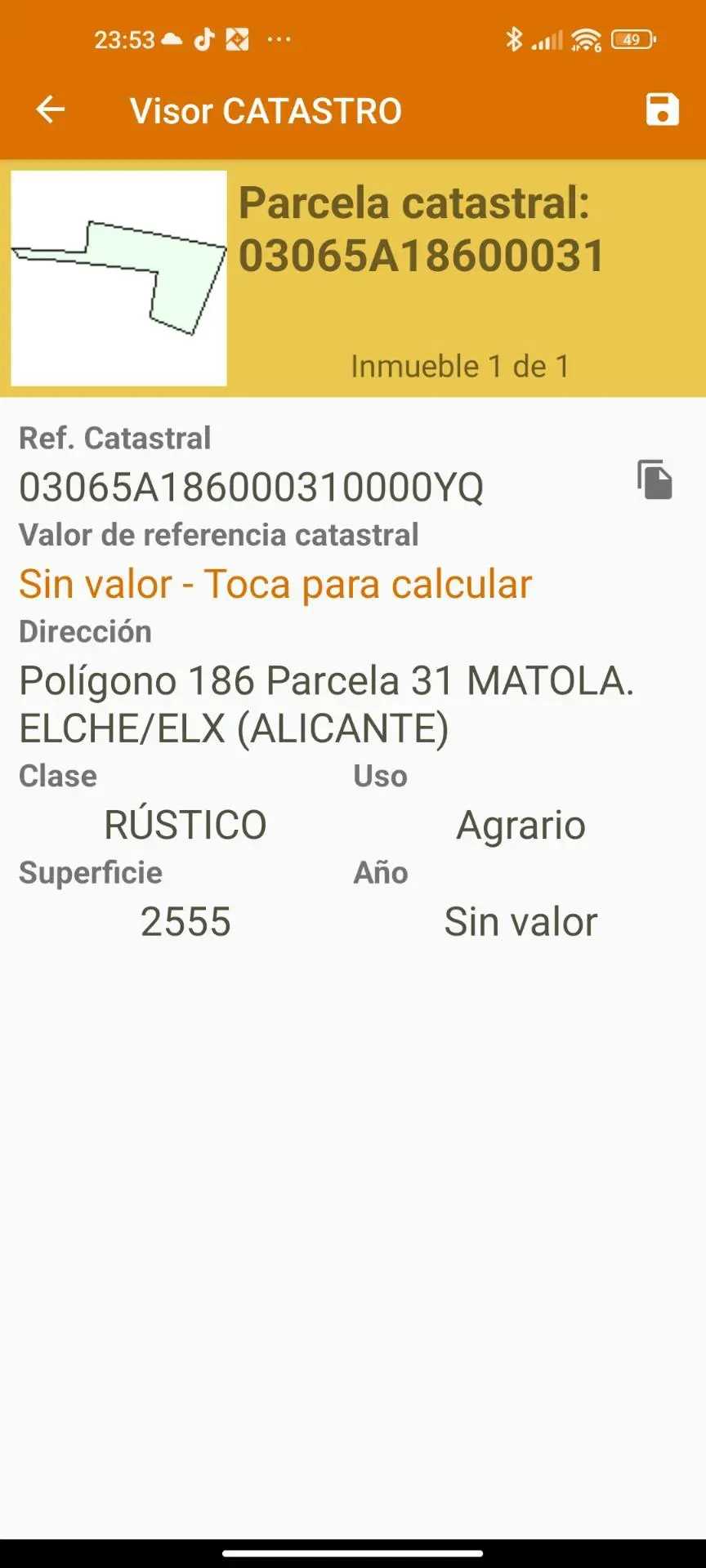 A plot of rustic land is available for sale in the Matola area of Elche, covering an area of 2,555 m2. This land is situated in a peaceful environment that is well connected, making it suitable for various uses.