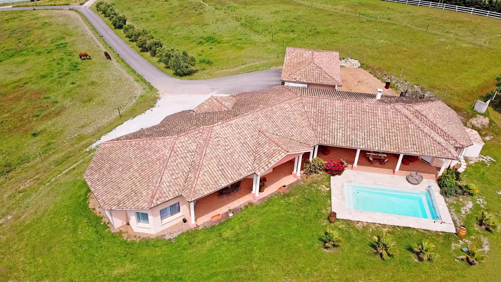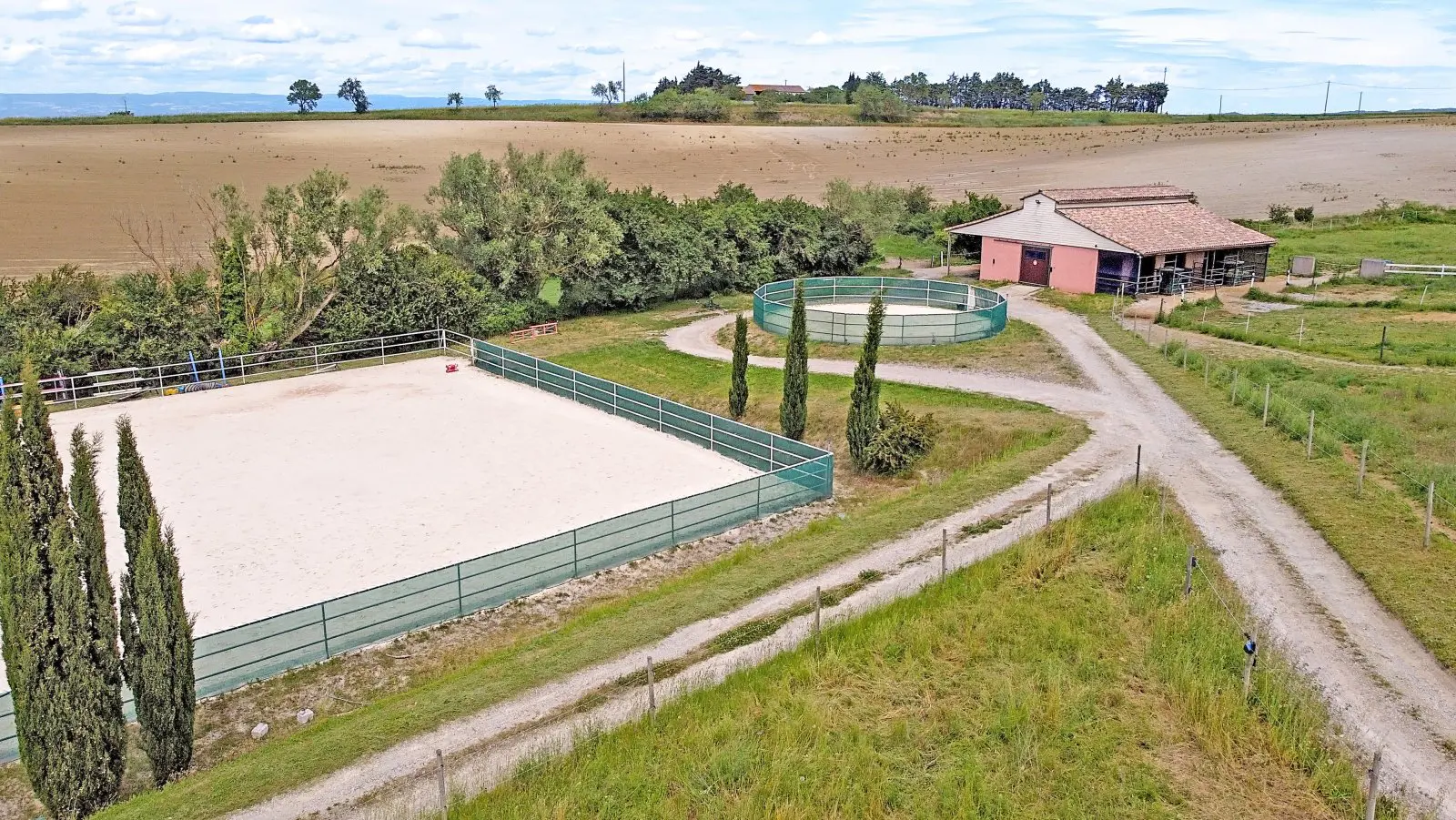 Located in the Occitanie region of Southern France, near Montréal/Limoux, this country house is designed for horse enthusiasts. The property features impressive panoramic views and offers a blend of living space and agricultural potential.