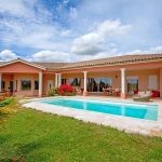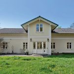 The main house consists of 346 m² of living space, featuring two bedrooms that come with their own en-suite bathrooms. The design includes high ceilings adorned with wooden beams. A pellet stove is included for heating, while the modern kitchen and utility room provide functionality for daily needs.