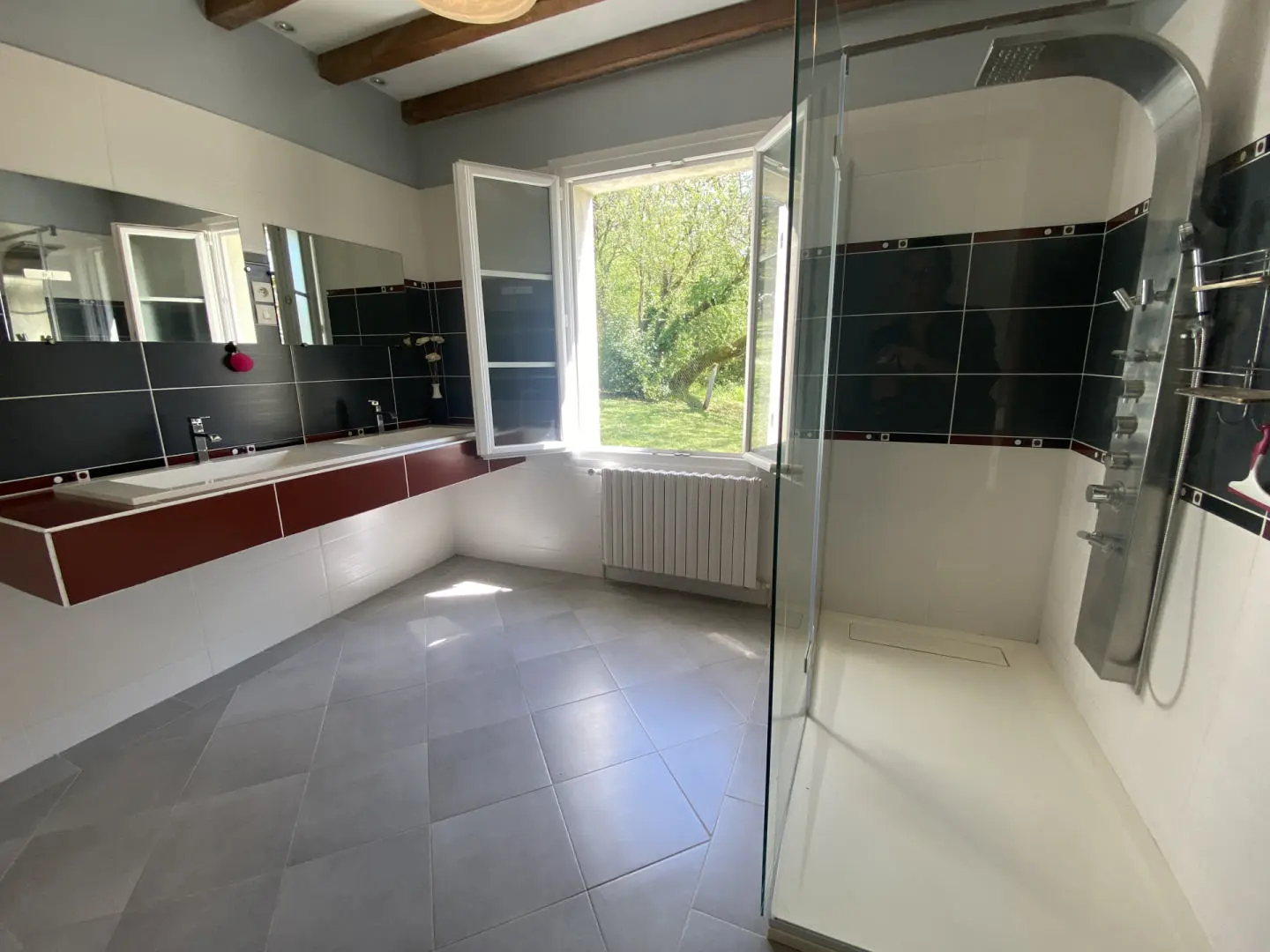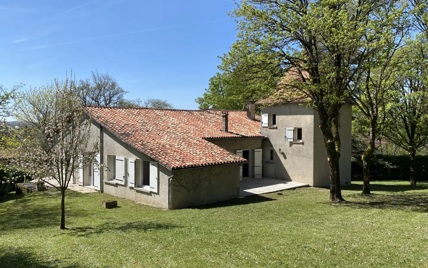 This spacious property is perfectly situated within walking distance of the shops, services, railway station and school of Montmoreau. The house offers: Garden level: An entrance, kitchen, a lounge/dining room with a mezzanine and magnificent fireplace, four bedrooms, two bathrooms, and two toilets. First Floor: One bedroom with a washroom. Basement: A garage, workshop and cellars. The property could easily be divided into two separate dwellings each with its own access. The grounds offer incredible views and are ideal for animals and/or self-sufficiency. The exterior also includes outbuildings and a chicken coop.