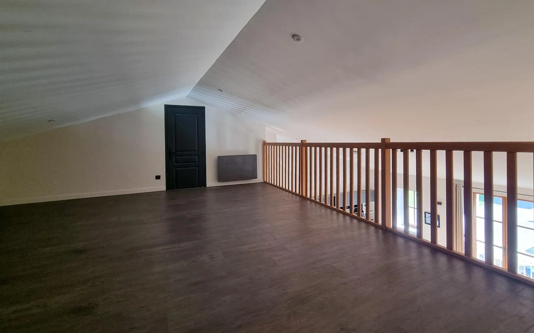 Upstairs, the second apartment offers another spacious open-plan living space with an American-style kitchen, two double bedrooms, a modern shower room, and separate WC. A striking open mezzanine provides flexible space ideal as a third bedroom, home office, or playroom.