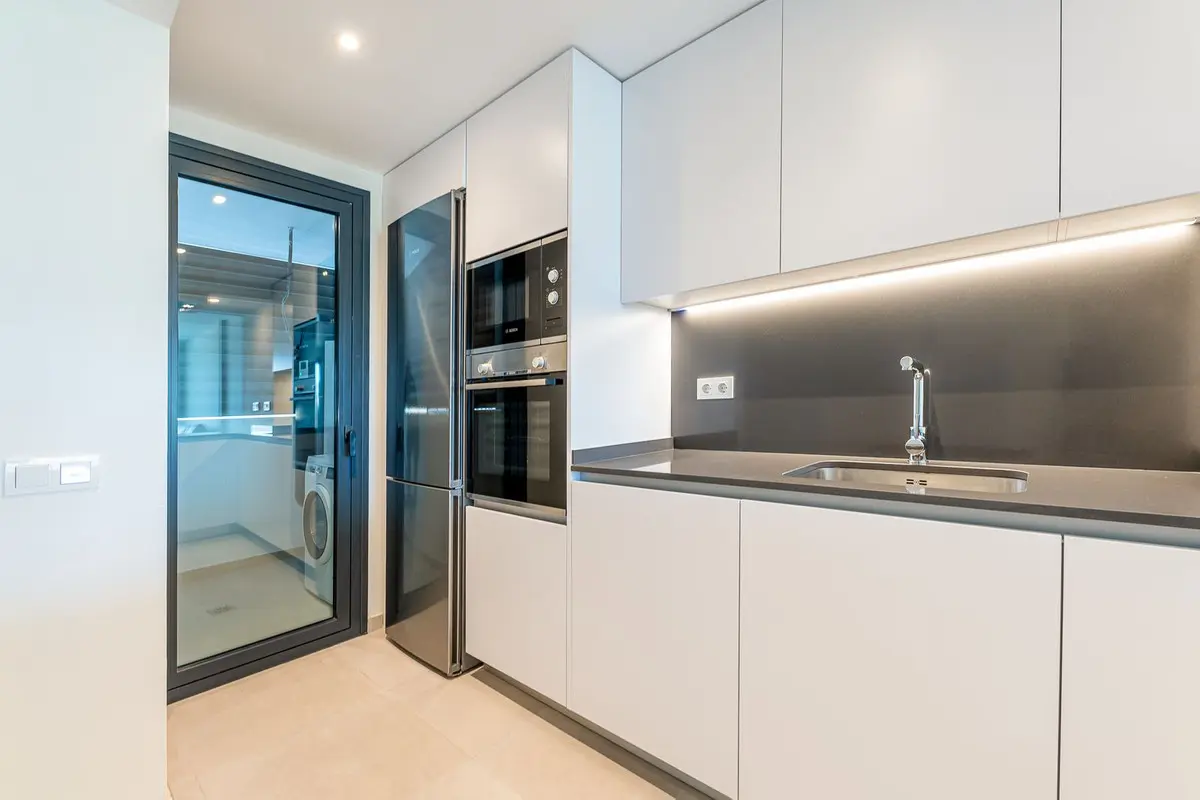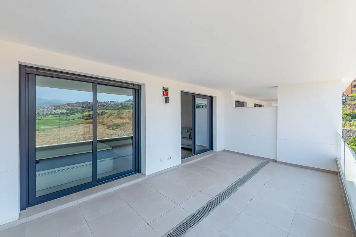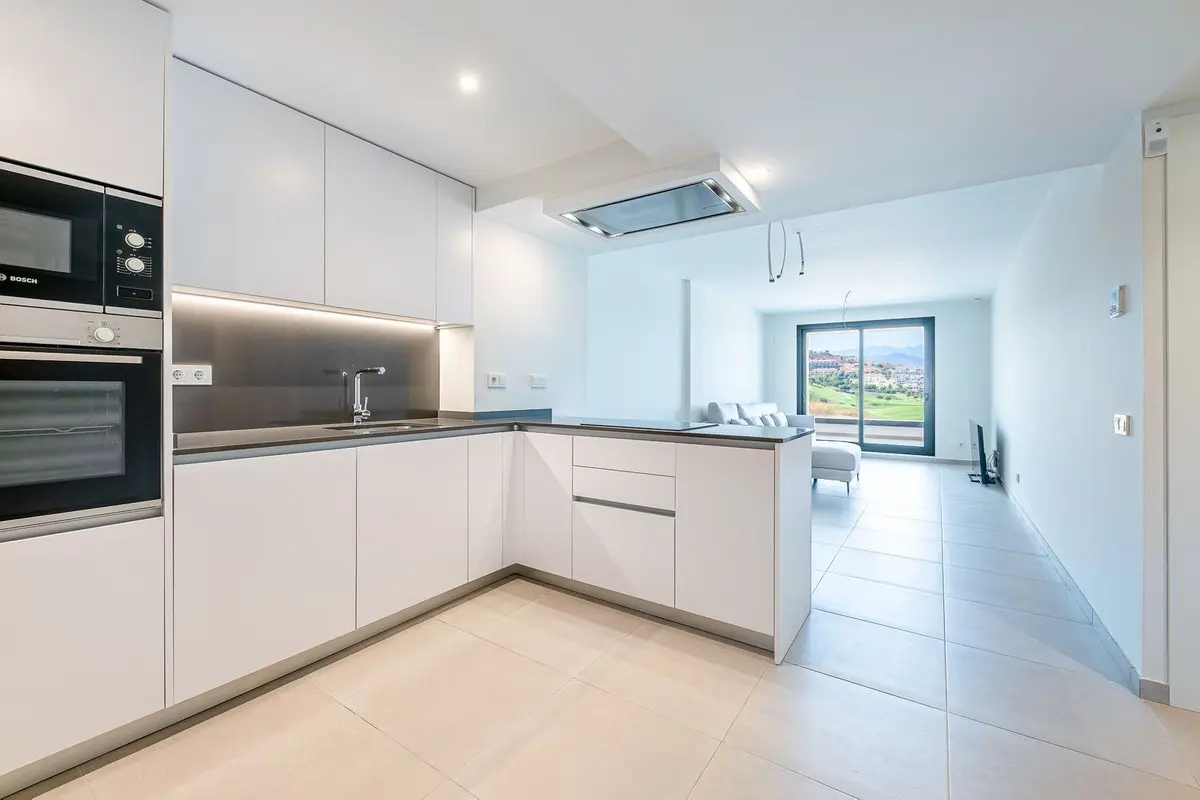 This newly constructed apartment comprises two bedrooms and two bathrooms, located in the Calanova Golf area. The property stands out due to its panoramic views of the surrounding golf course and mountains, accessible from the terrace. With an open-plan layout, the apartment offers a functional living environment.