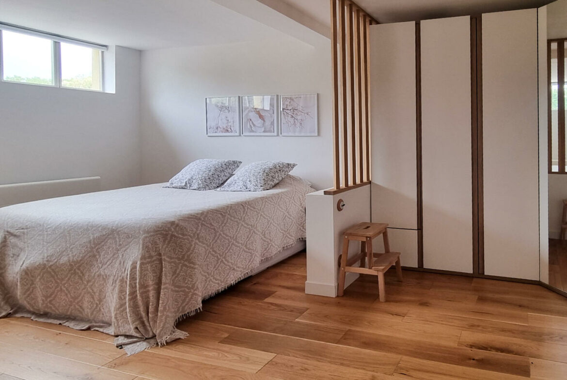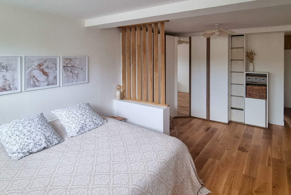 This recently renovated property boasts a living space of approximately 130 m², set on a plot size of 302 m². It features three bedrooms, including a sizable master suite that spans 36 m², positioned conveniently on the garden level. The home includes two bathrooms along with two separate WCs, providing ample facilities for residents and guests alike.