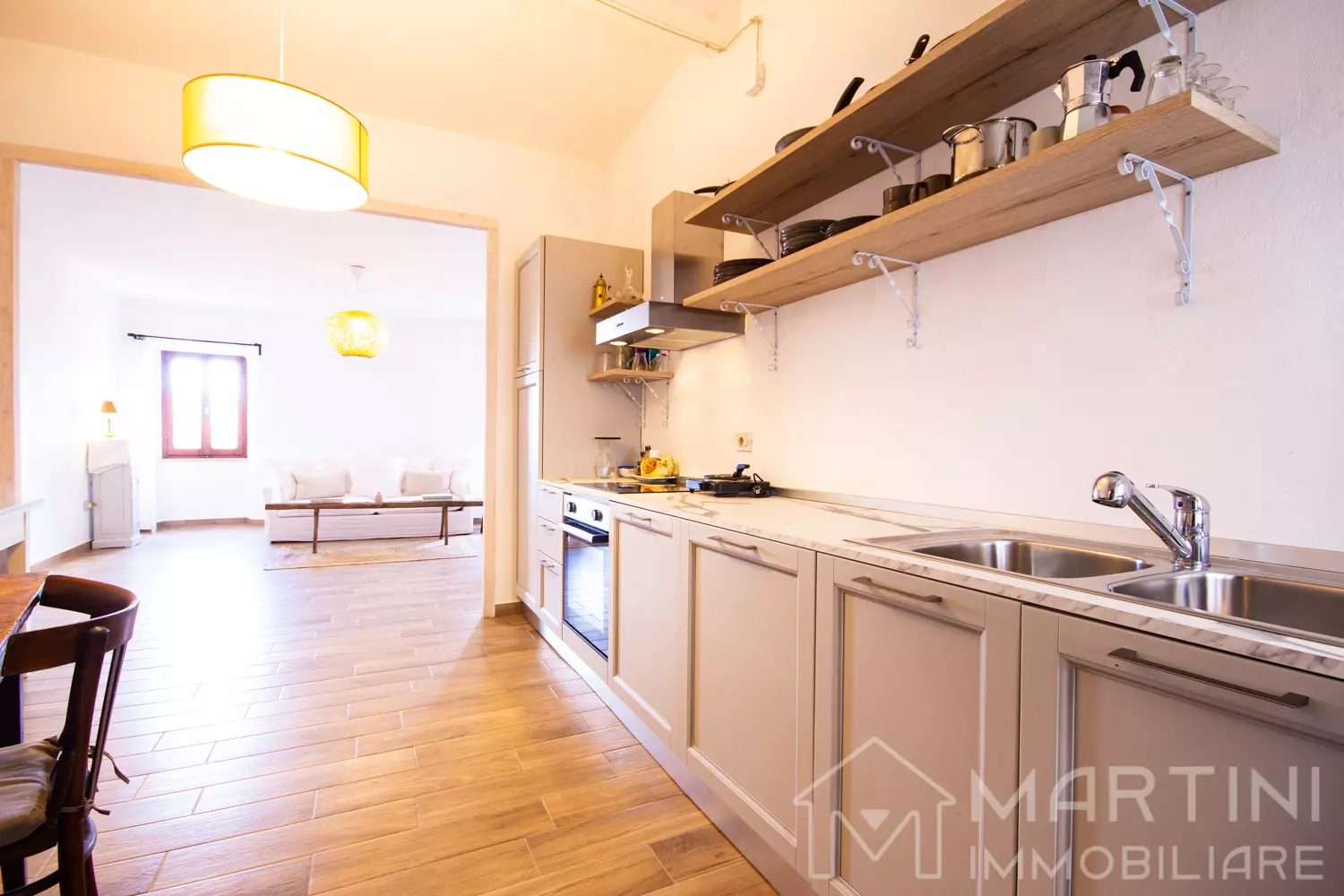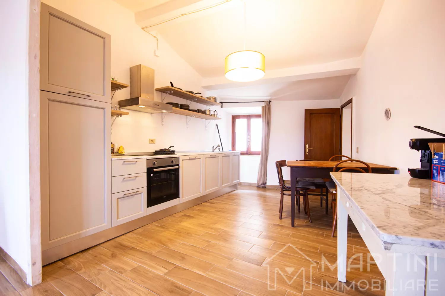 The apartment was renovated in 2024, with an intervention that saw the floors, plaster and two bathrooms redone, in addition to the creation of a beautiful open-space between the kitchen and the large living room.