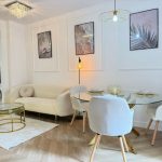 The apartment features five bedrooms and three bathrooms, which provides ample space for families or individuals looking for extra room. An independent kitchen is included, which allows for flexibility in meals and dining arrangements. The living-dining room is designed to accommodate various furniture layouts for your convenience.