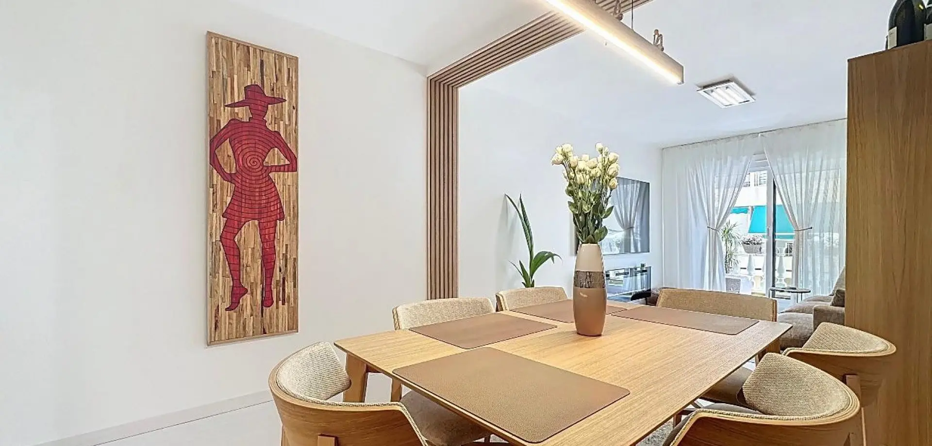 Just 200 meters from the sandy shores, this 99 m² apartment is a prime opportunity for those seeking a modern living space. The property has undergone extensive renovations, incorporating high-quality materials and advanced features.