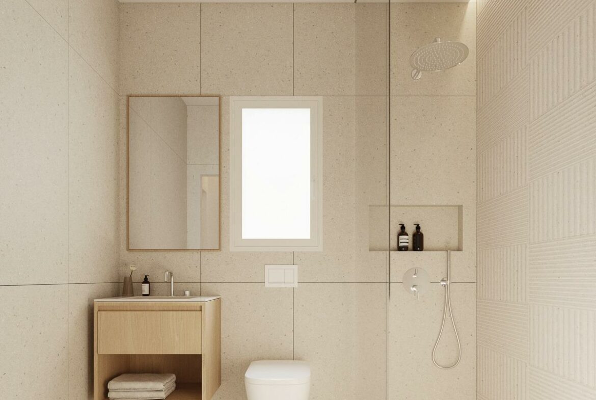 These residences present a choice between 1 or 2 bedroom apartments, each equipped with 2 bathrooms including an en-suite option. The open layouts are crafted to enhance space and natural light, focusing on functionality. Durable features include security entrance doors, fitted wardrobes with textile finishes, aluminum carpentry with thermal break, and motorized shutters in the living areas. Kitchens and bathrooms come with high-quality fixtures, including shower screens and built-in mirrors. The properties also include pre-installed ducted air conditioning for consistent comfort year-round.