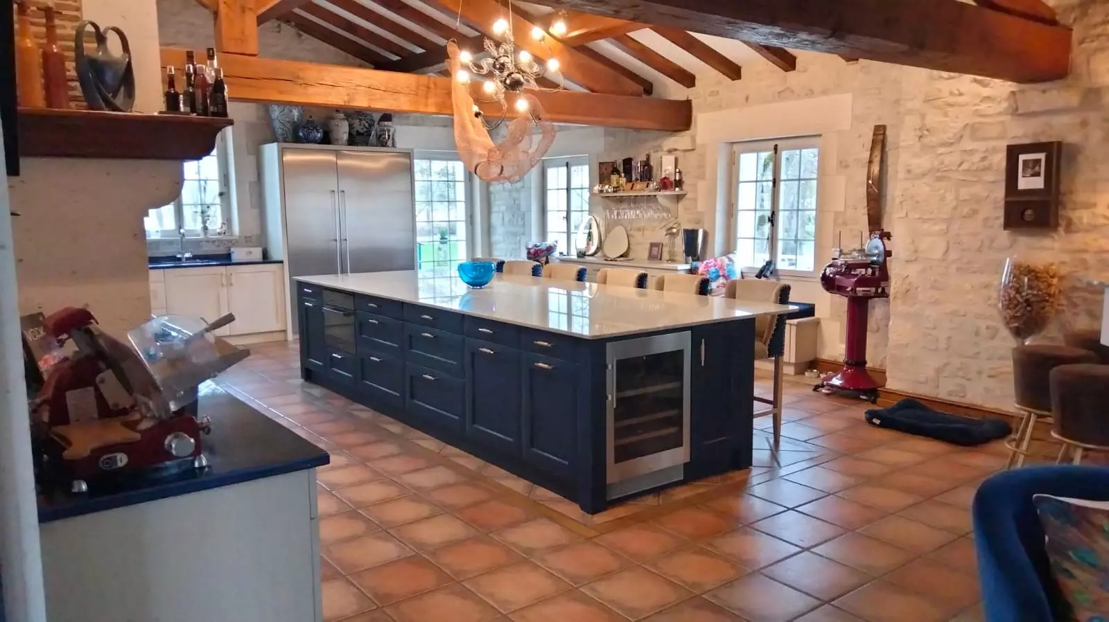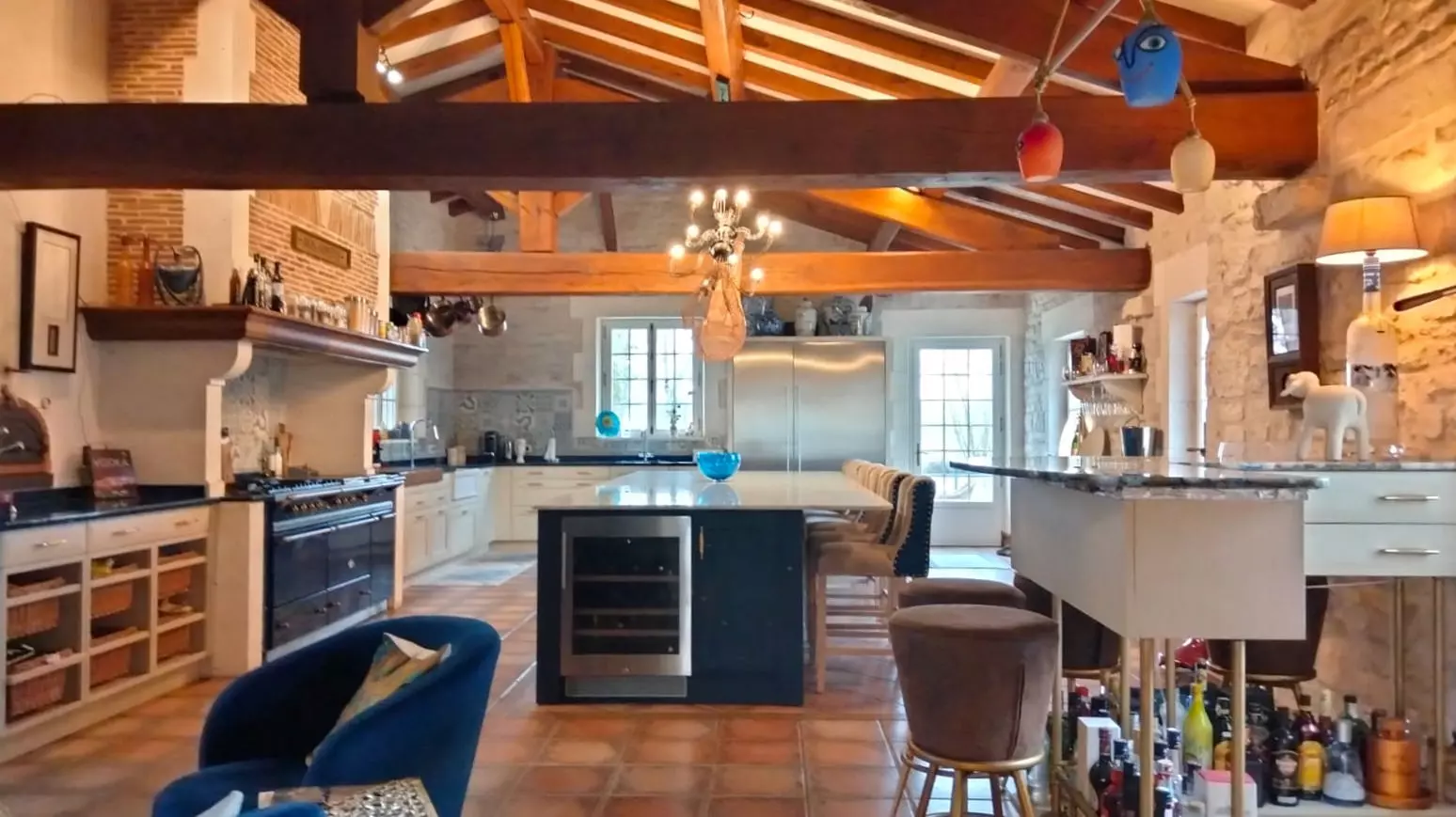 The current owners have invested significantly in the restoration of this mill. They have managed to combine modern comfort with the historical elements that make this property distinctive. The open and luminous interiors include advanced kitchen facilities, dining spaces, and bars, some of which are designed for outdoor enjoyment with views of the river.