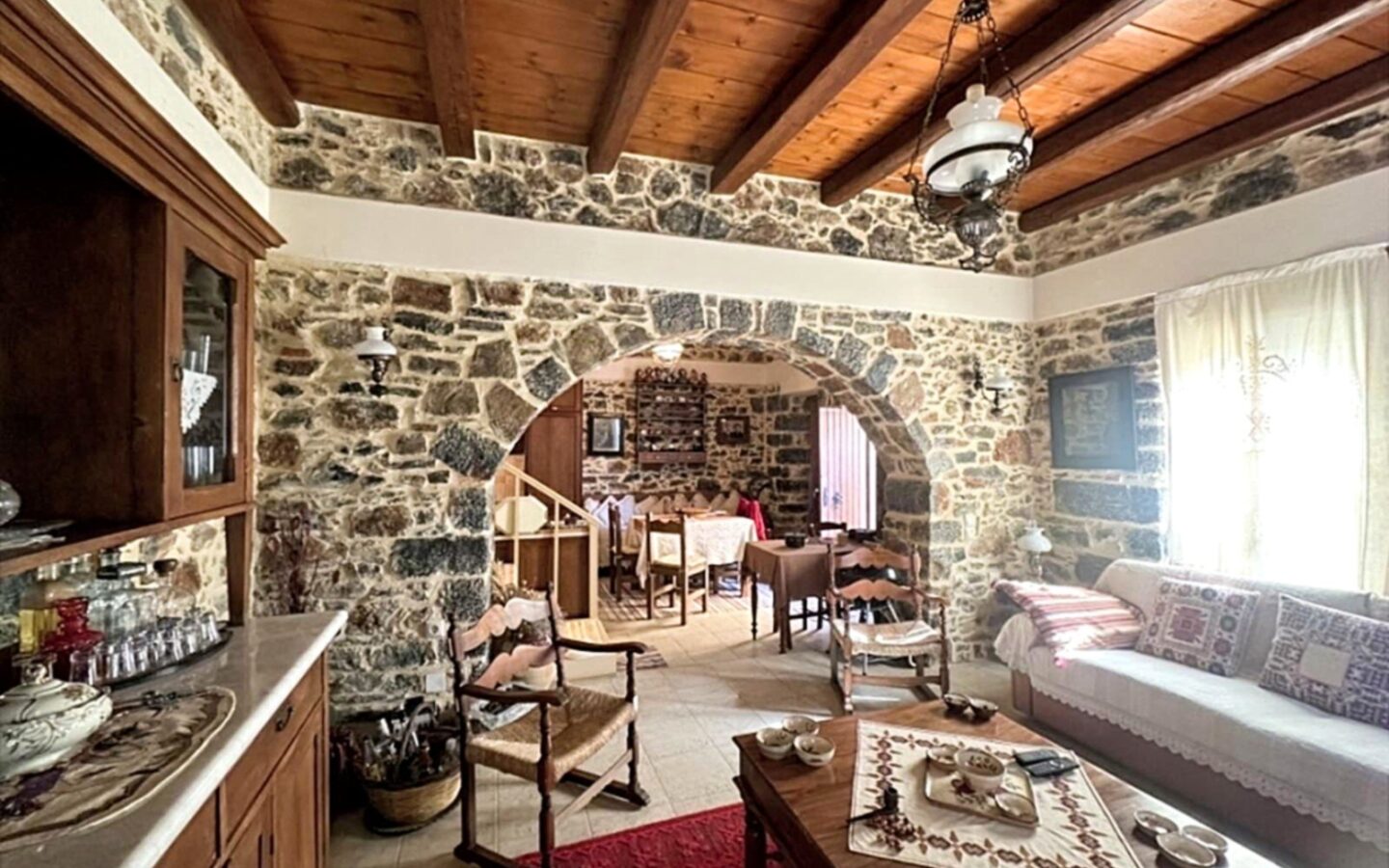 Located in the traditional village of Voulismeni, East Crete, this old stone house offers a unique blend of history and modern living. Renovated in 2009, it features exposed stonework, wooden ceiling beams, and an internal stone arch, giving it a distinctive character. The property is equipped with double glazing and external shutters, ensuring comfort throughout the year, along with AC/warm air units and contemporary kitchen and bathroom fittings.