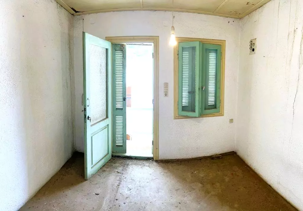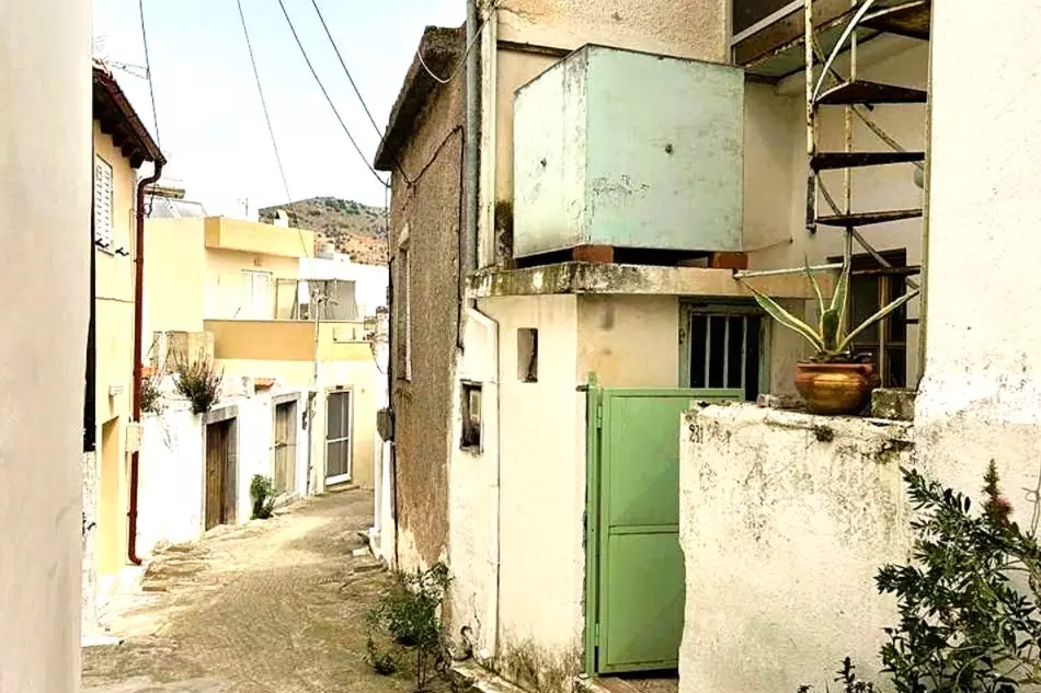 This property offers an ideal canvas for renovation, located on a small lane in the center of Voulismeni, East Crete. It features a two-level layout with two inter-connecting rooms on the ground floor. One of the rooms includes a corner fireplace, adding character to the space. You will find external steps leading to another two inter-connecting rooms on the upper level, where one room provides ladder access to a loft area.