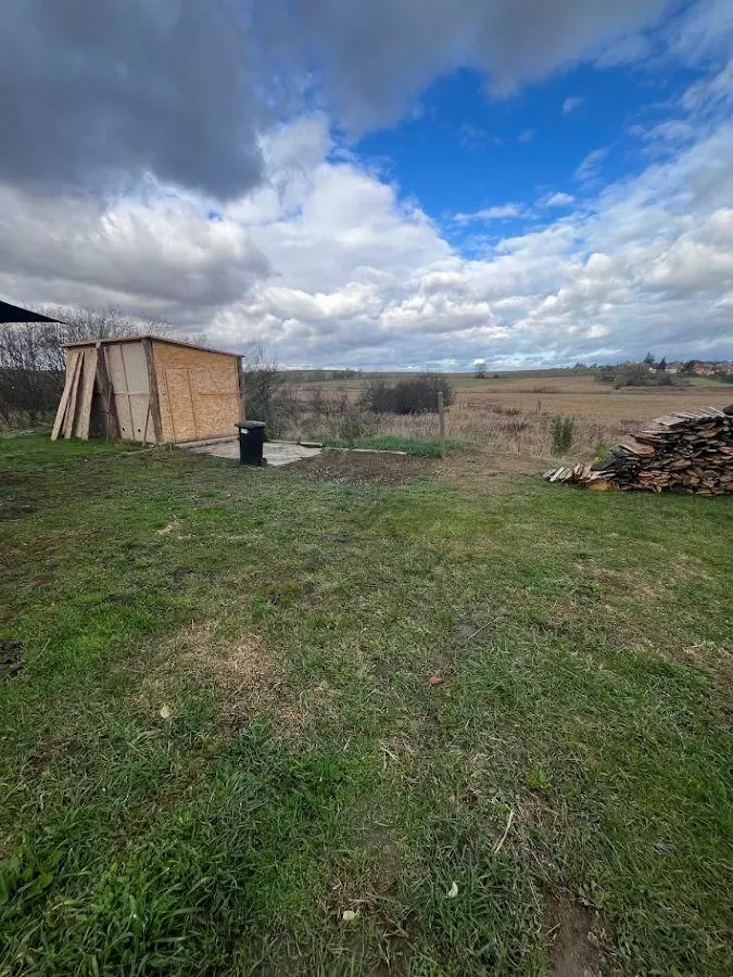The plot spans 2,800 m² and includes outbuildings suitable for wood storage or housing pets. There is also a well-maintained garden that offers potential for personal gardening or landscaping projects.