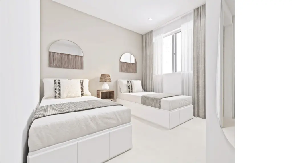 These new apartments come equipped with three bedrooms and two bathrooms, offering ample space for individuals or families. The layout also includes a living room and kitchen, along with a terrace. This setup provides a functional environment for both relaxation and entertaining.