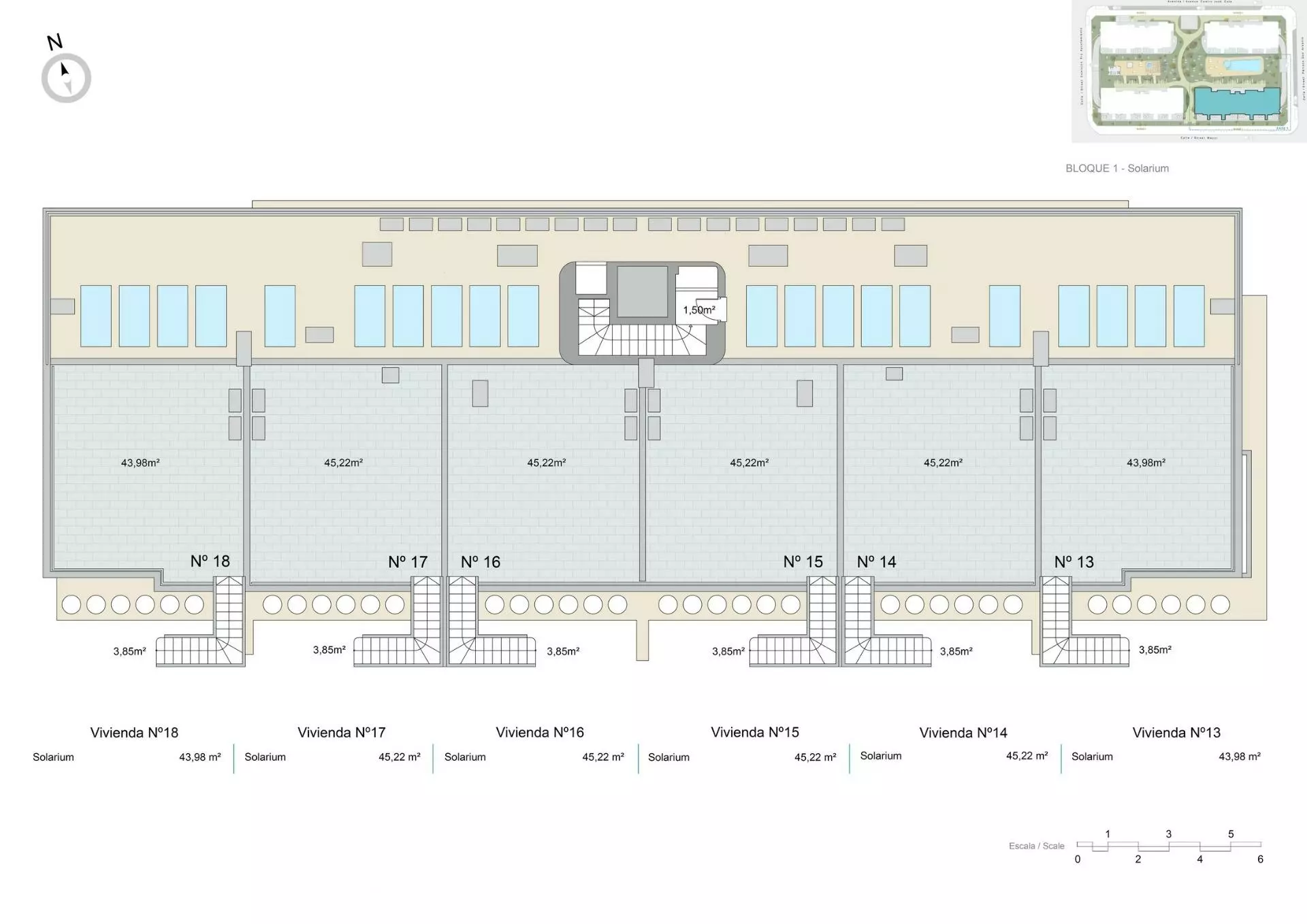 The kitchens in these units are fully furnished, presenting an opportunity for residents to personalize their appliance choices according to individual preferences. The use of high-quality materials is evident throughout the complex, with interior carpentry made entirely of wood and exterior windows crafted from Climalit/aluminum. These selections contribute to the overall durability and thermal-acoustic efficiency of the buildings.