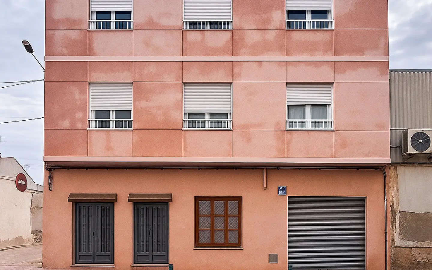 This three-storey building in Monóvar is now available on the market, combining residential spaces with a ground-floor premises. Built in 1975 and extended in 1986, the property has a total built area of approximately 360 m² distributed across a garage and two independent apartments, along with a terrace and rooftop solarium.