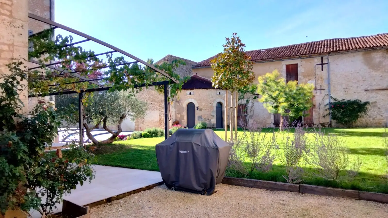 Impressive large sheltered private courtyard with vehicular access for camping cars via vast secure gate, surrounded by original old stone outbuildings currently used for storage or for future projects, subject to the necessary approvals. The recently installed covered salt water pool 7m x 12 m is found here with an elegant dovecote back drop, finally a 30 m² shady dining terrace, an easily maintained gardens and in addition a separate secure barn for parking of 6 plus vehicles.
