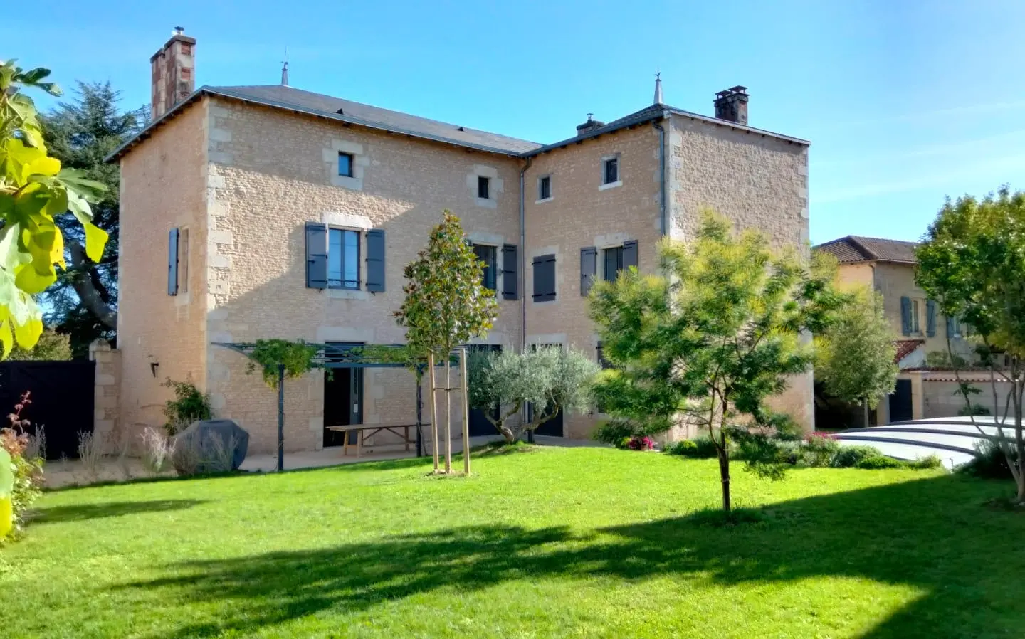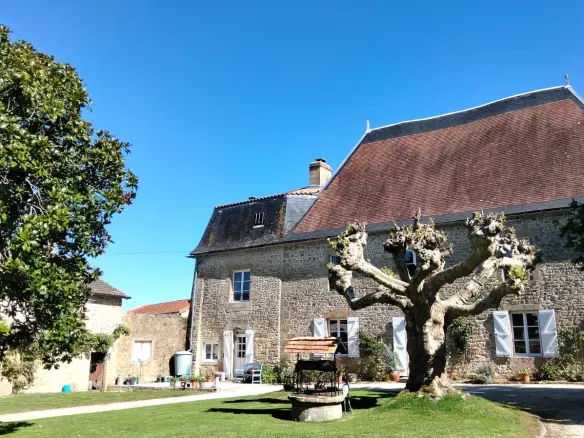 Very rare find, a sensational must-see property. Being new to the market, only recently restored to a very high level. The old stone village farmhouse, with a classic private courtyard with a large pool area, historic old stone dovecote, more rustic outbuildings and shady dining terraces, perfect for entertaining family or guests. In addition, the separate large barn is suitable for classic car collections, the famous circuit automobile du Vigeant is just up the road, all set in the heart of the historic village of Usson du Poitou with shops and restaurants a short stroll away.