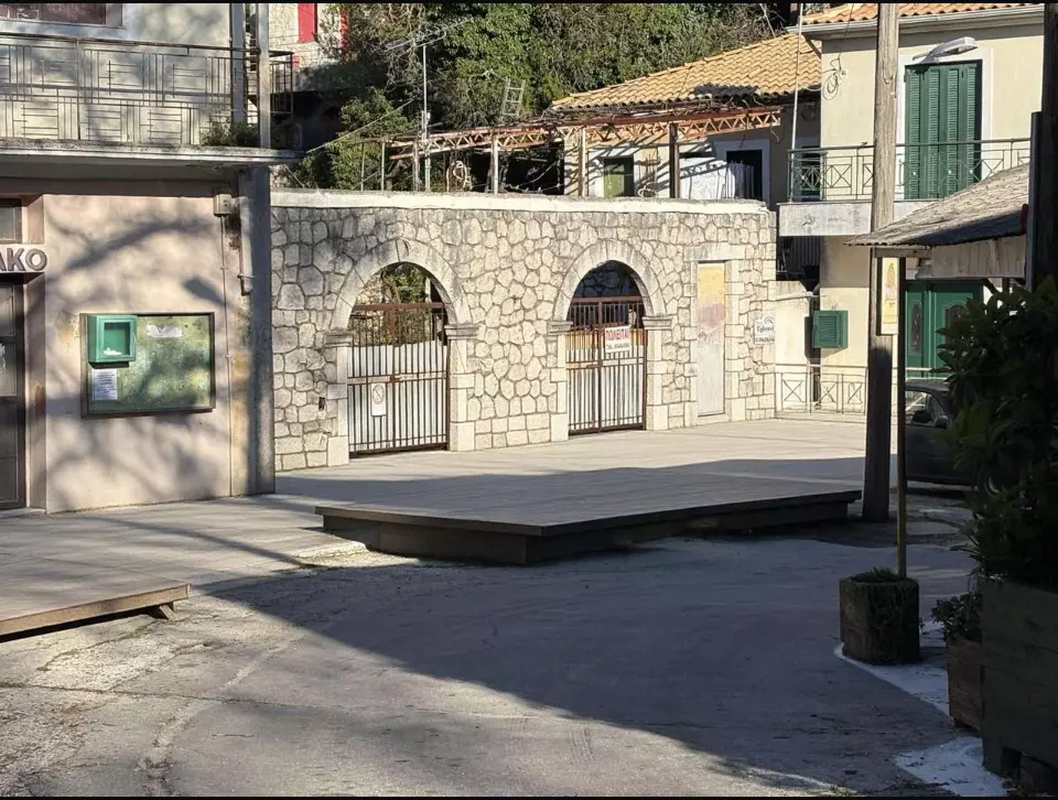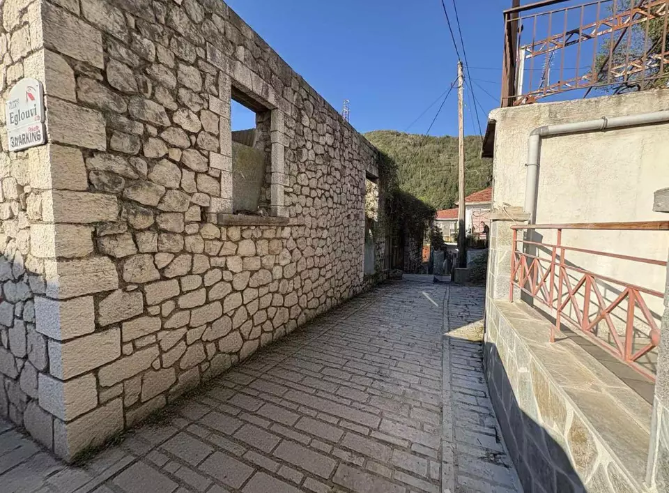 A stone corner building with no roof . Size 238sqm with a facade of 11sqm including a garden. On the central sqare of the traditional famous village of Eglouvi (known for its unique quality lentils). It can build 250 ca sqm. Suitable for both residential or business usage in combination or seperately ( eg.residence, traditional guesthouse, snack shop etc).