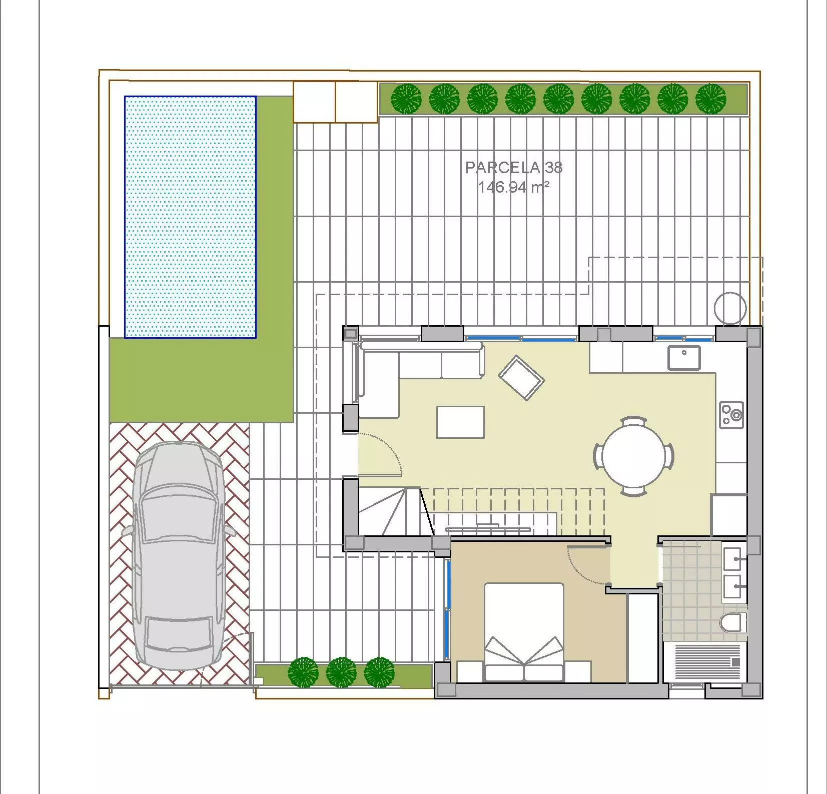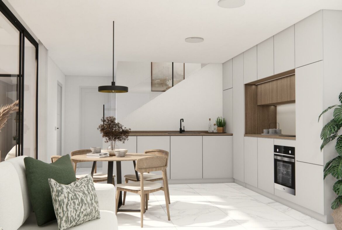 Located in the tranquil neighborhood of La Herrada, Los Montesinos, these new build villas offer a blend of modern living and peaceful surroundings. Each villa in this development has been designed to maximize functionality, featuring three bedrooms and two bathrooms, making them suitable for families or couples. The open-plan kitchen connects seamlessly with a lounge, providing a space for gatherings. Additionally, fitted wardrobes and electric blinds enhance convenience.