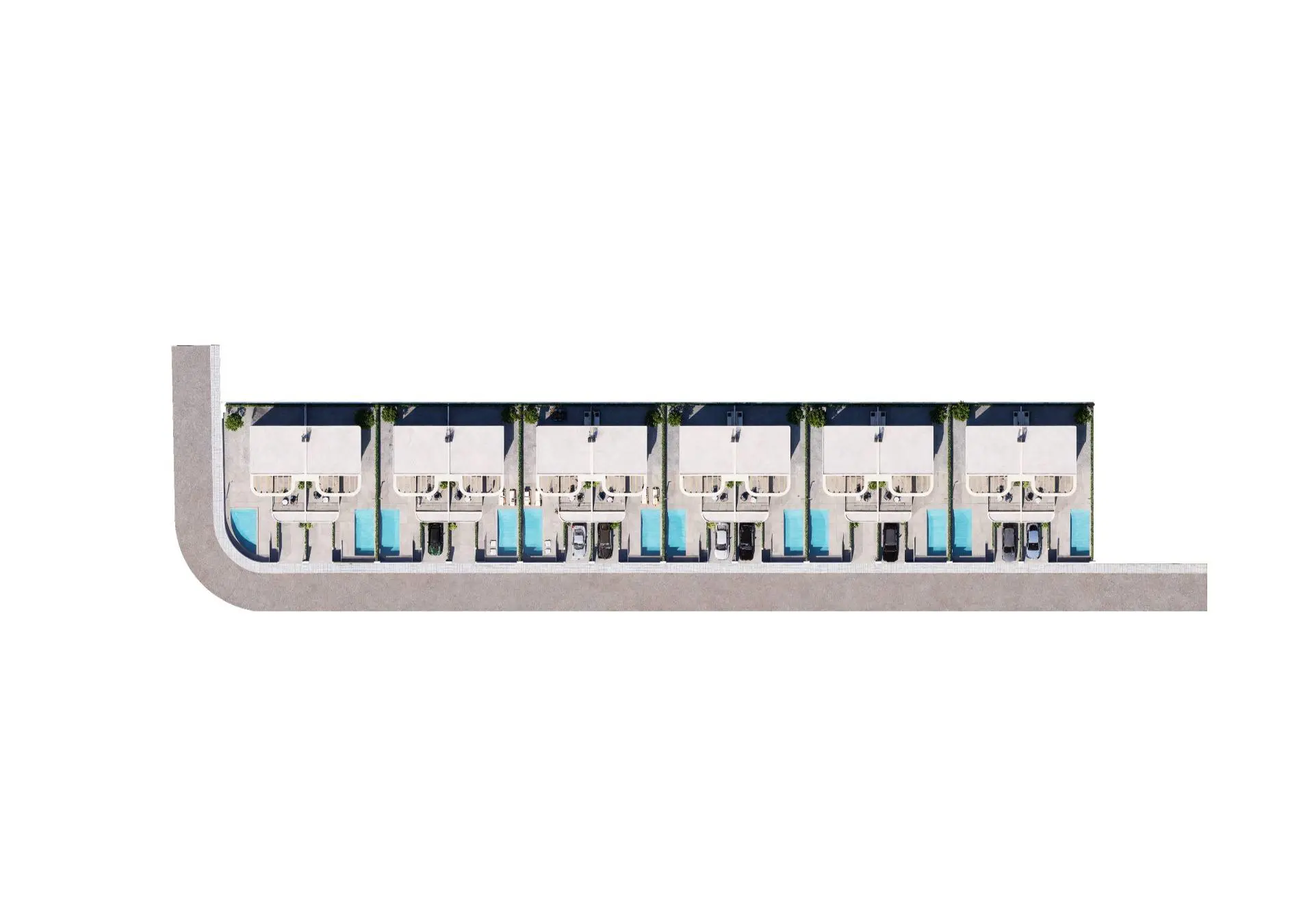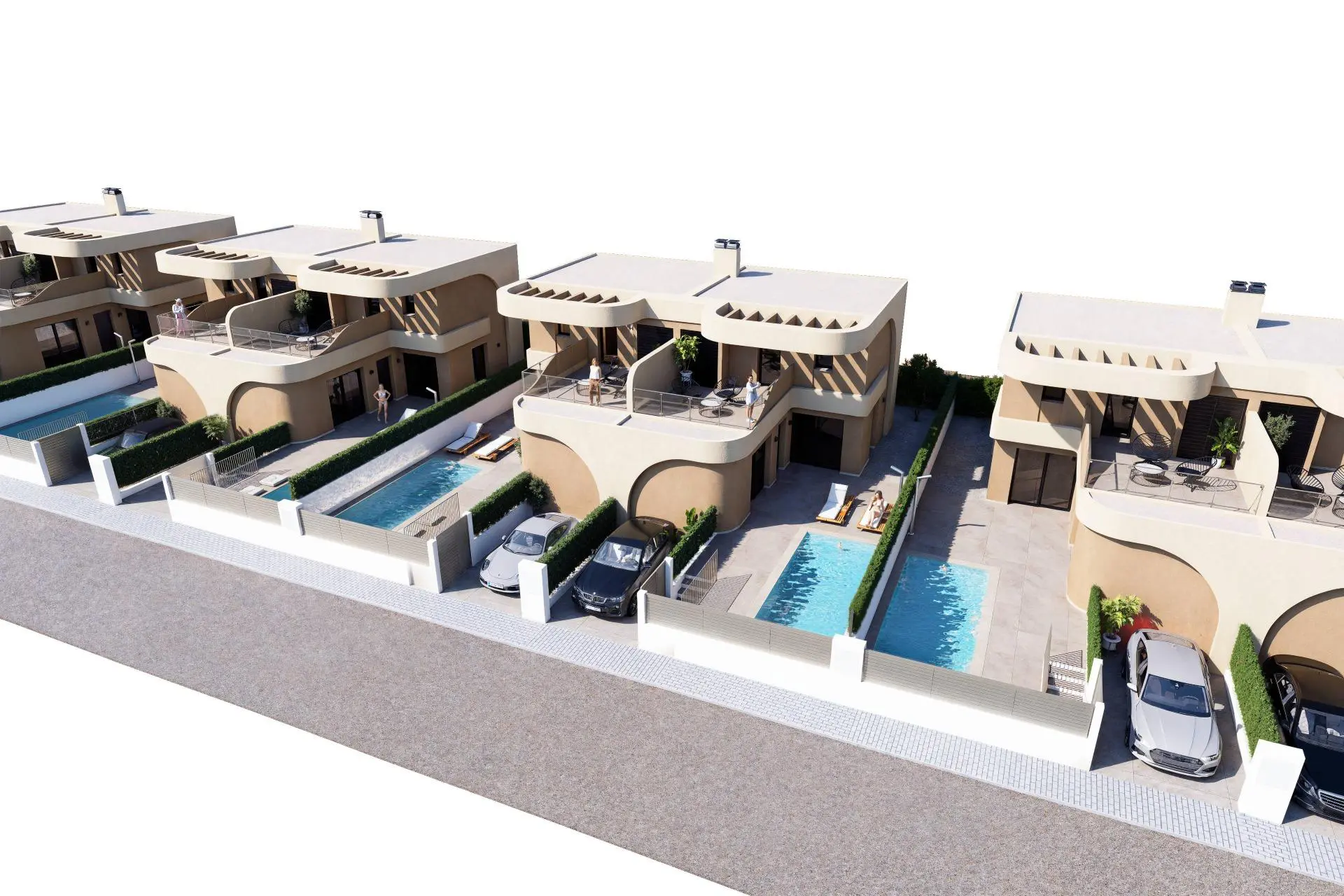 This development emphasizes modern architectural design with careful attention to construction details. The facade features curved lines that give the homes a contemporary appearance. High quality finishes contribute to durability and ease of maintenance, ensuring the properties can withstand the test of time.