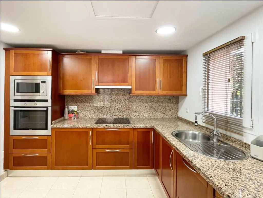This elegant semi-detached villa located in Riviera del Sol offers an ideal combination of space, comfort, and quality, perfect for enjoying a relaxed lifestyle in a peaceful residential setting. Distributed over two levels, the ground floor features a spacious living and dining area, a fully equipped kitchen with Siemens appliances, a guest toilet, a storage room, and direct access to a 12-metre porch overlooking a charming private garden. Garden maintenance is included in the price, and the outdoor area also features a barbecue, making it ideal for entertaining.