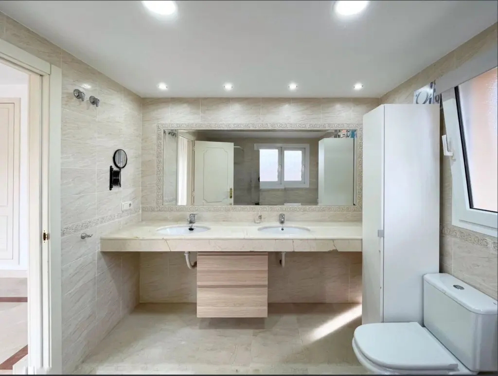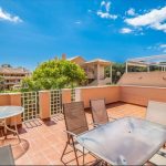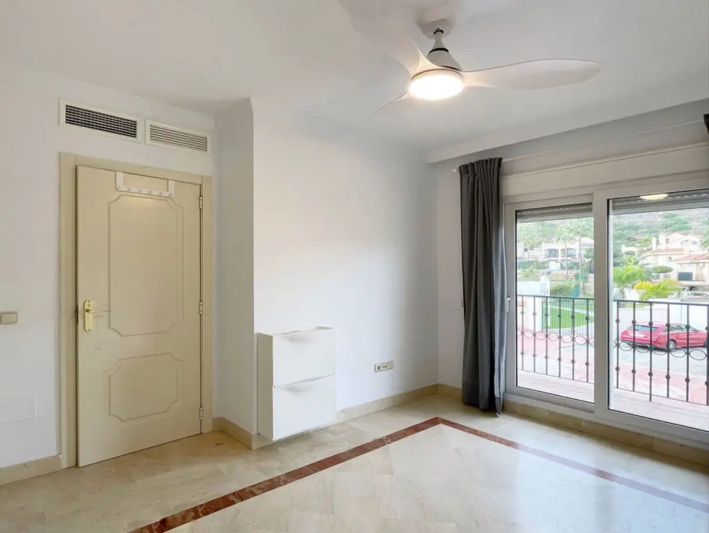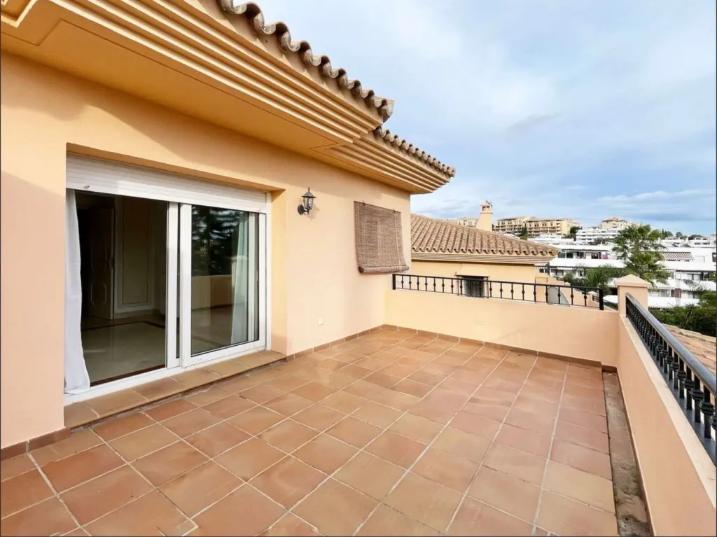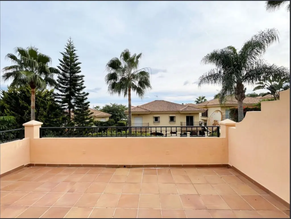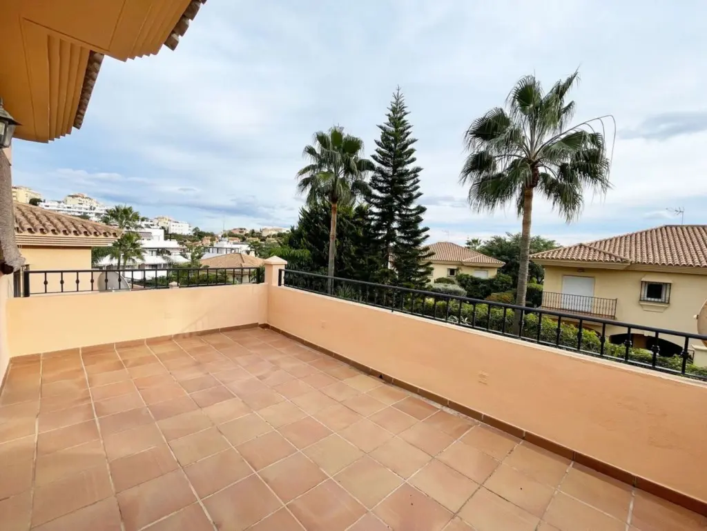 The upper floor comprises three double bedrooms and two full bathrooms, including a master en-suite with both a shower and a bathtub. The master bedroom also enjoys access to two terraces with open views over Riviera del Sol, providing a tranquil space to relax.