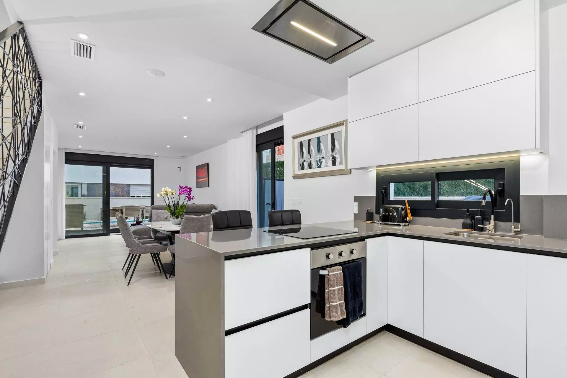 Welcome to a new residential project featuring eight semi-detached villas in Guardamar del Segura. These buildings are designed to provide a blend of modern living and convenience, making them suitable for various lifestyles. Each villa comprises four bedrooms and four bathrooms, structured across three floors. You will find an open plan kitchen that flows into a dining and lounge area, ideal for social gatherings. The properties also include large gardens and dedicated parking space, enhancing the outdoor living experience.