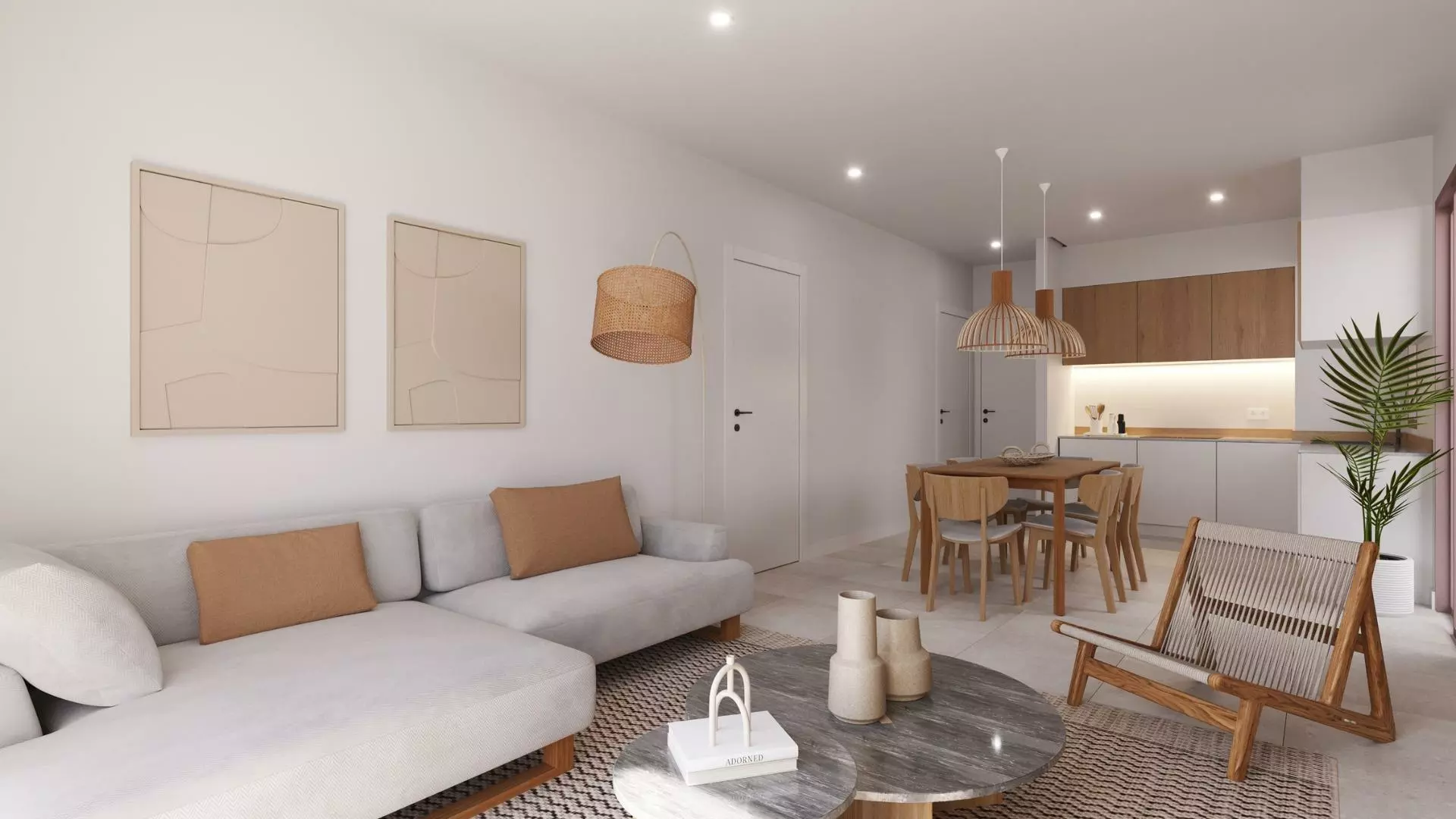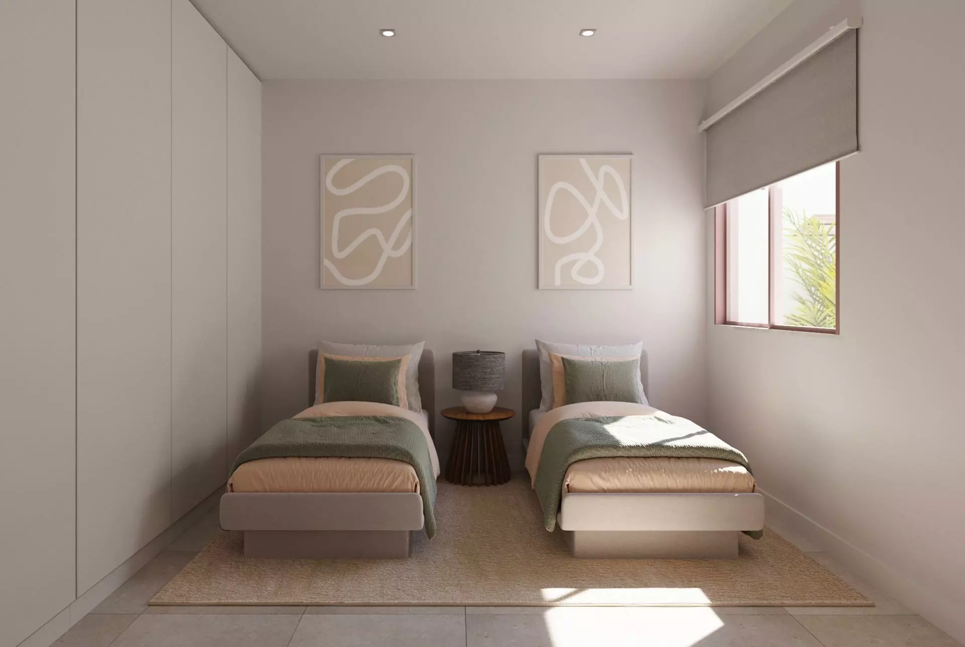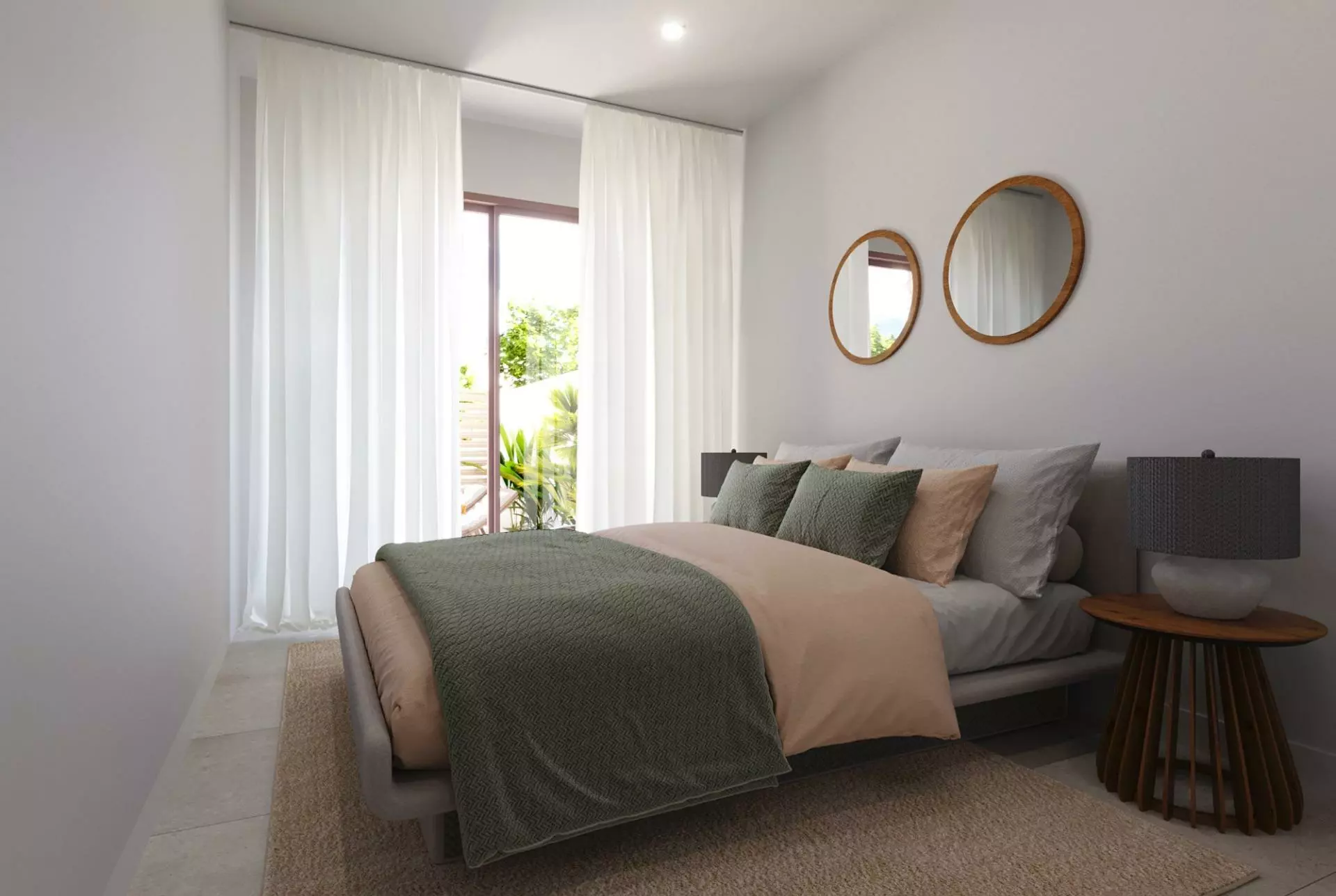 The villas are constructed on one level, providing a convenient layout. You can choose from models featuring either 2 or 3 bedrooms, along with 2 bathrooms. The design integrates an open plan kitchen that flows into the lounge area, making for easy movement and interaction.