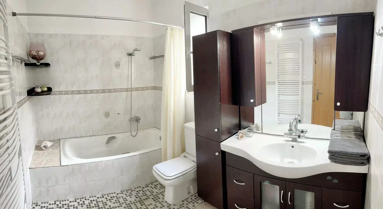 This spacious apartment is located on the second floor, making it a comfortable and accessible retreat. It boasts three well-sized bedrooms, a cozy living room with an integrated kitchen, and two bathrooms—one with a shower and another classic bathroom setup. Plus, there’s a storeroom that adds a great deal of practical value to your living space.