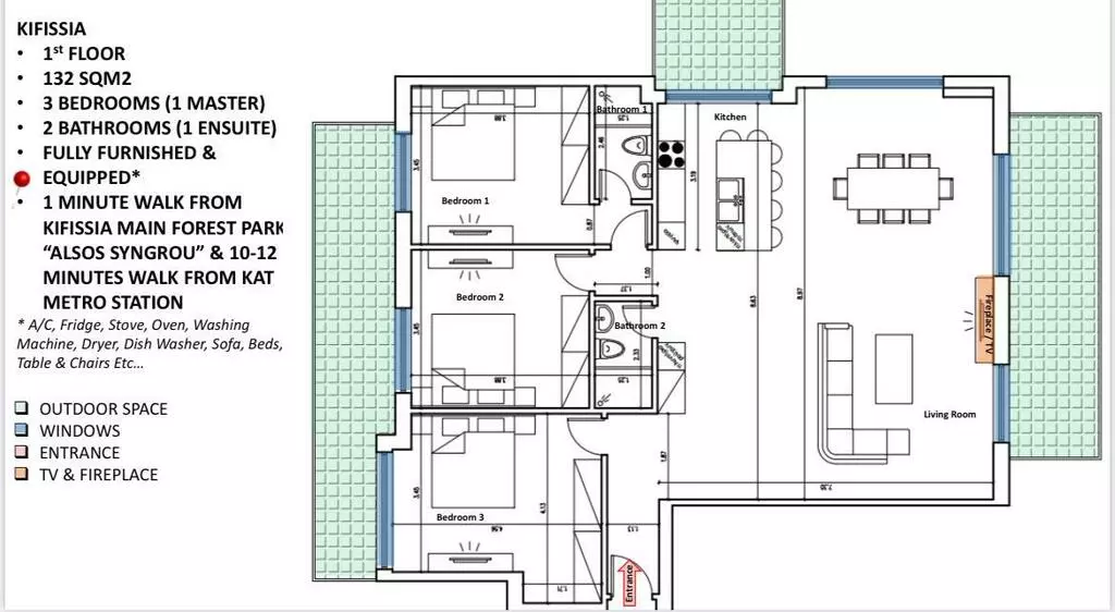 This beautiful apartment, located on the first floor, boasts a thoughtful layout featuring three cozy bedrooms. Whether you’re looking to create a serene sanctuary or a lively space for family gatherings, this apartment fits the bill. You have a bright and airy living room that seamlessly connects to the kitchen, making it perfect for entertaining guests or enjoying quiet family dinners.