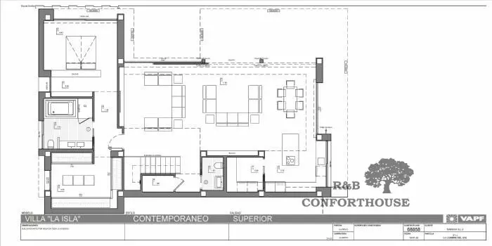 Let’s talk about one of its crown jewels, Villa La Isla. Picture yourself in an impressively spacious open-plan living area that includes three distinct zones: a cozy TV area, a stylish lounge, and a dining space that seamlessly connects to an oversized kitchen via a magnificent central island. This design opens up to a beautiful terrace that overlooks the pool, allowing you to feast alfresco while enjoying the Mediterranean sun virtually all year round.