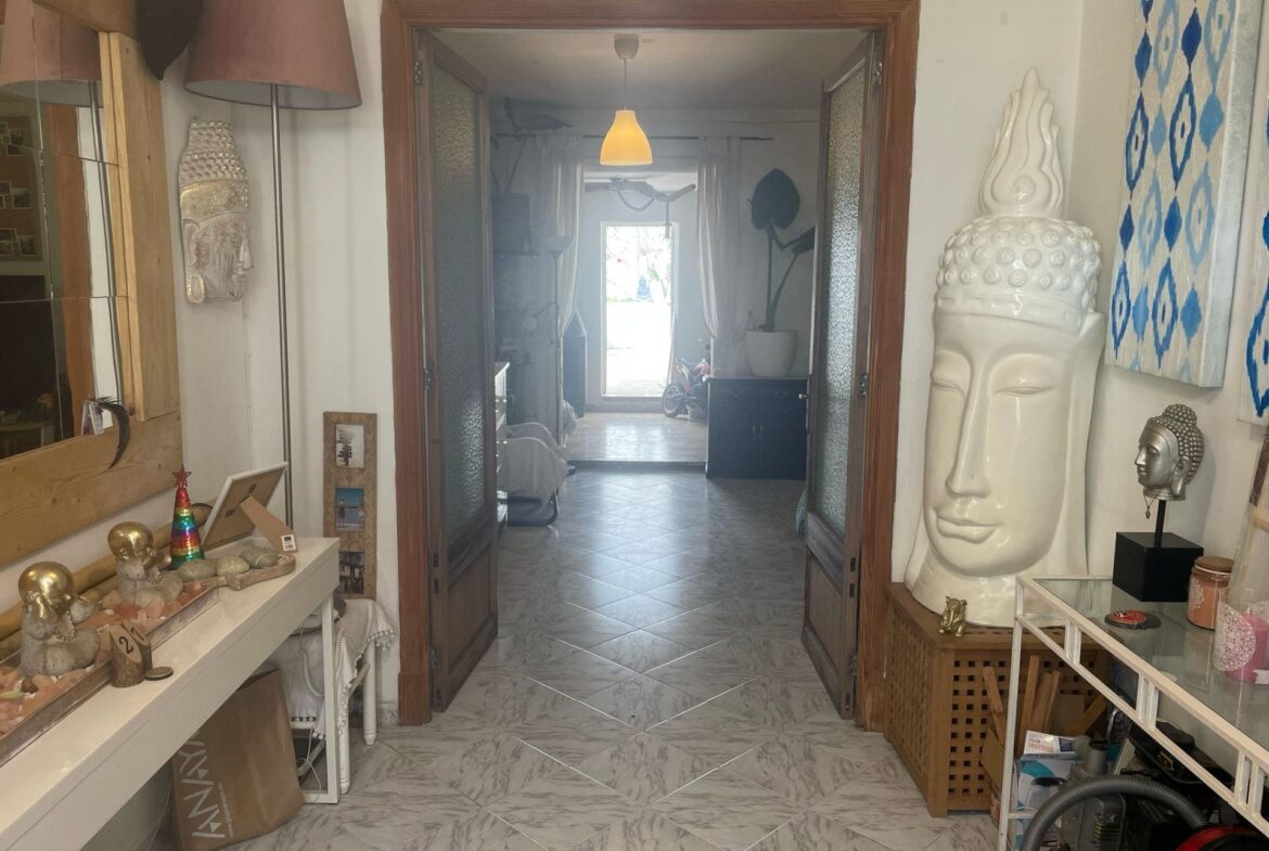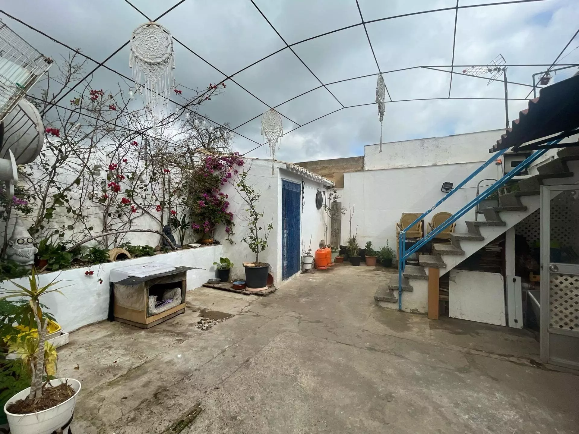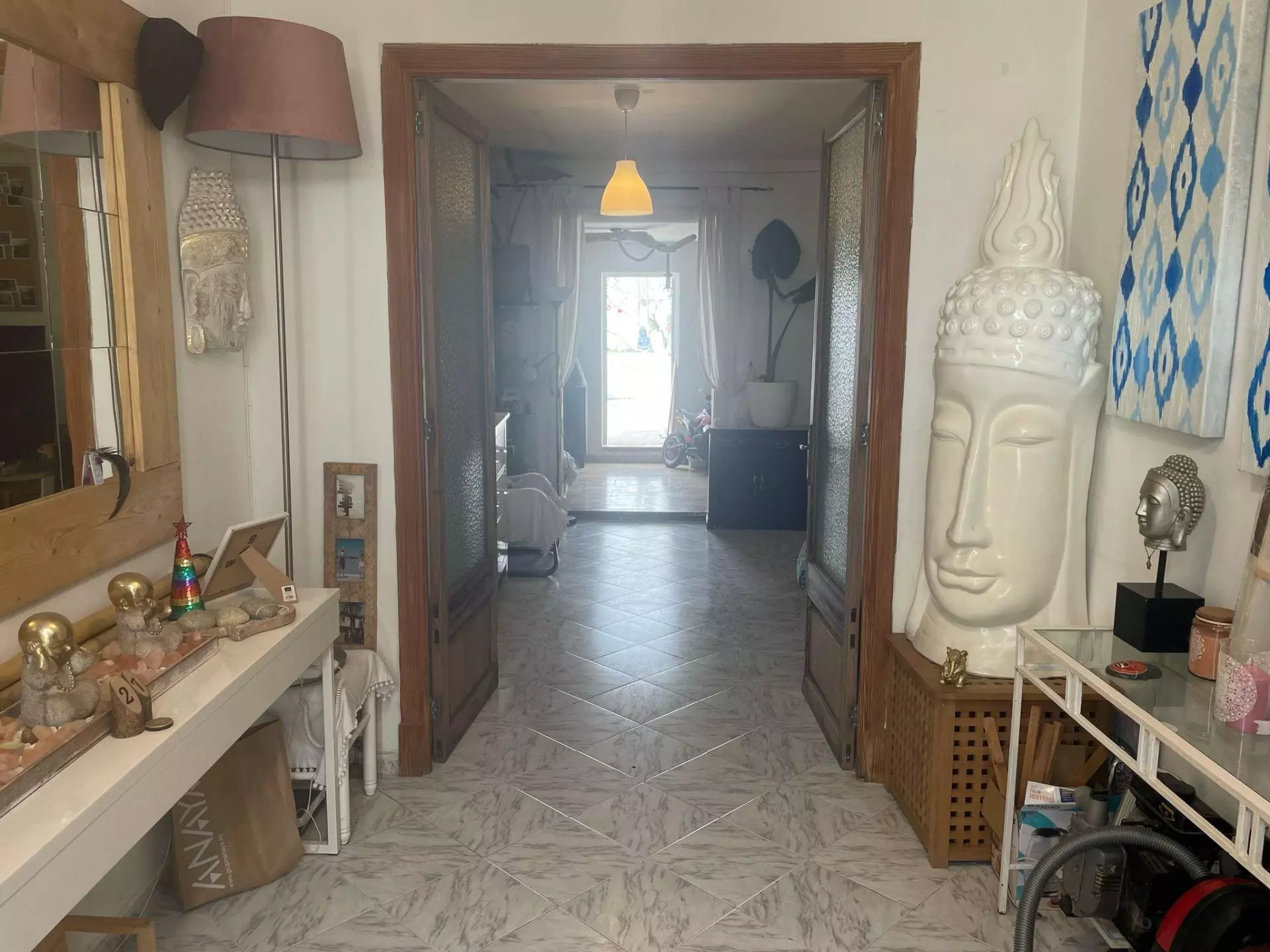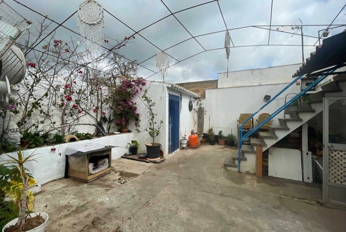 This single-level house has a constructed area of 134 m². The residence includes an entrance hall, a living room, three bedrooms, a bathroom, a separate kitchen, and an additional living room complete with a fireplace. Outside, there is a patio area which includes a storage area, a laundry room, and a toilet. Stairs from the patio lead to a large roof terrace. Currently laid out on a single level, there is potential to construct additional living space on the first floor and, if desired, a pool in the courtyard.