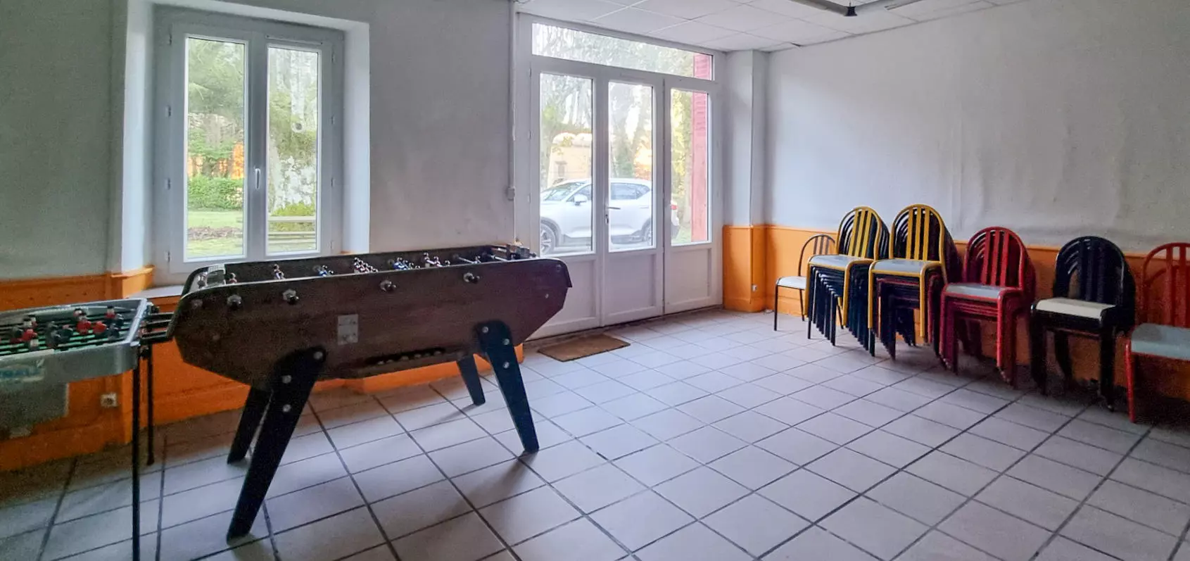 For leisure, there is also a games room. This area is designed to entertain visitors of all ages. Practical amenities, such as a laundry room, bicycle storage, and shared sanitary facilities, enhance the functionality of the property.
