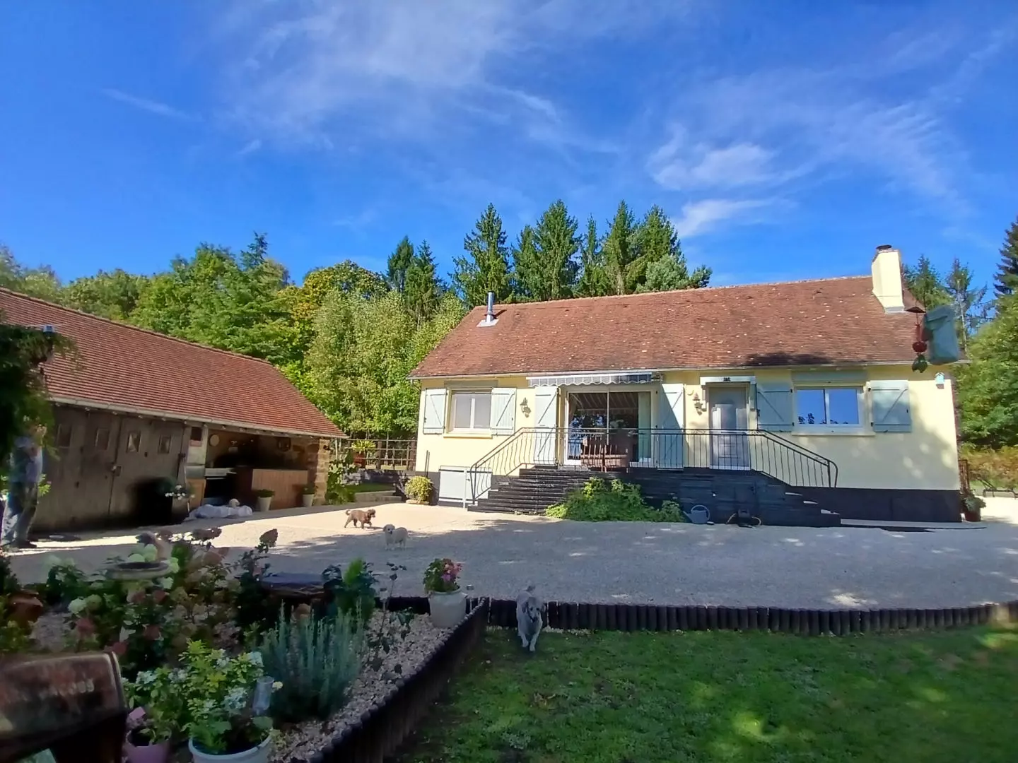 This property is located in the countryside just outside the village of St Priest les Fougeres. It is situated in a quiet area with no close neighbors, offering a flat plot of land that can be observed from the elevated house.