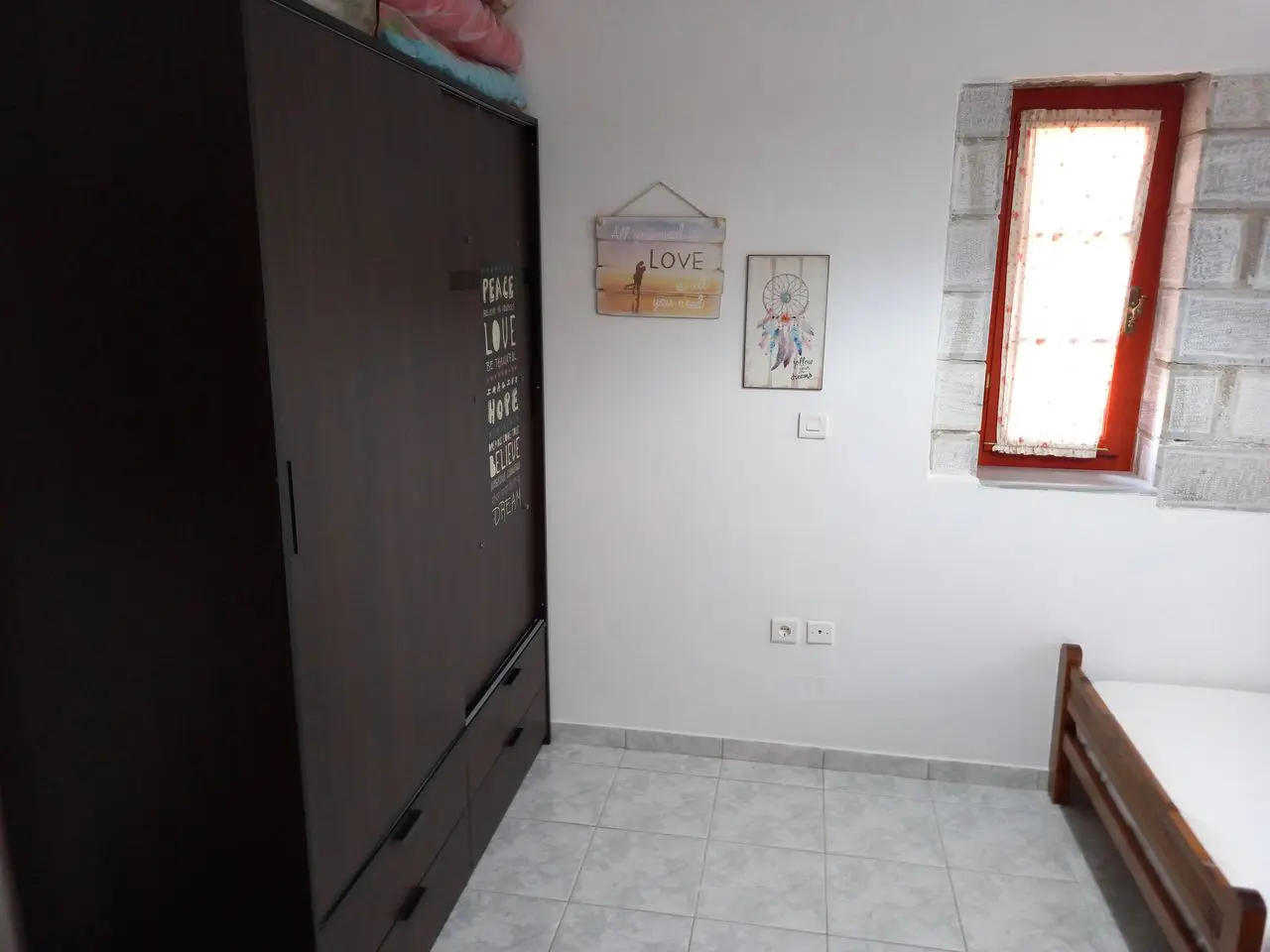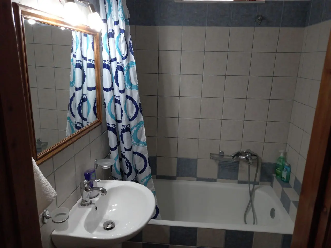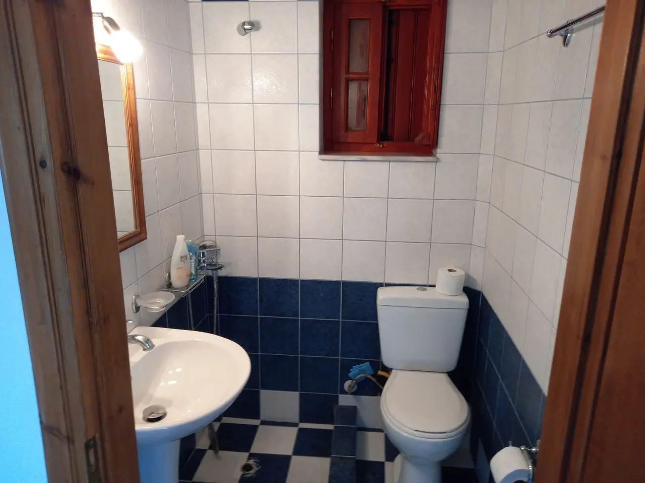 Stepping inside, you are greeted by a cozy open plan living room/kitchen that immediately feels like home. Can you imagine yourself curled up by the fireplace, lost in the pages of a book while the aroma of a home-cooked meal wafts from the well-appointed kitchen? Picture this: a kitchen fully equipped with everything you need, complemented by a dining table perfect for family gatherings or dinner parties with friends for up to six people. Also on the ground floor, a spacious bedroom awaits, complete with a large wardrobe to neatly store all your belongings, ensuring a clutter-free haven for rest. Adjacent lies a bathroom adorned with a bath, promising a relaxing soak at the day’s end.