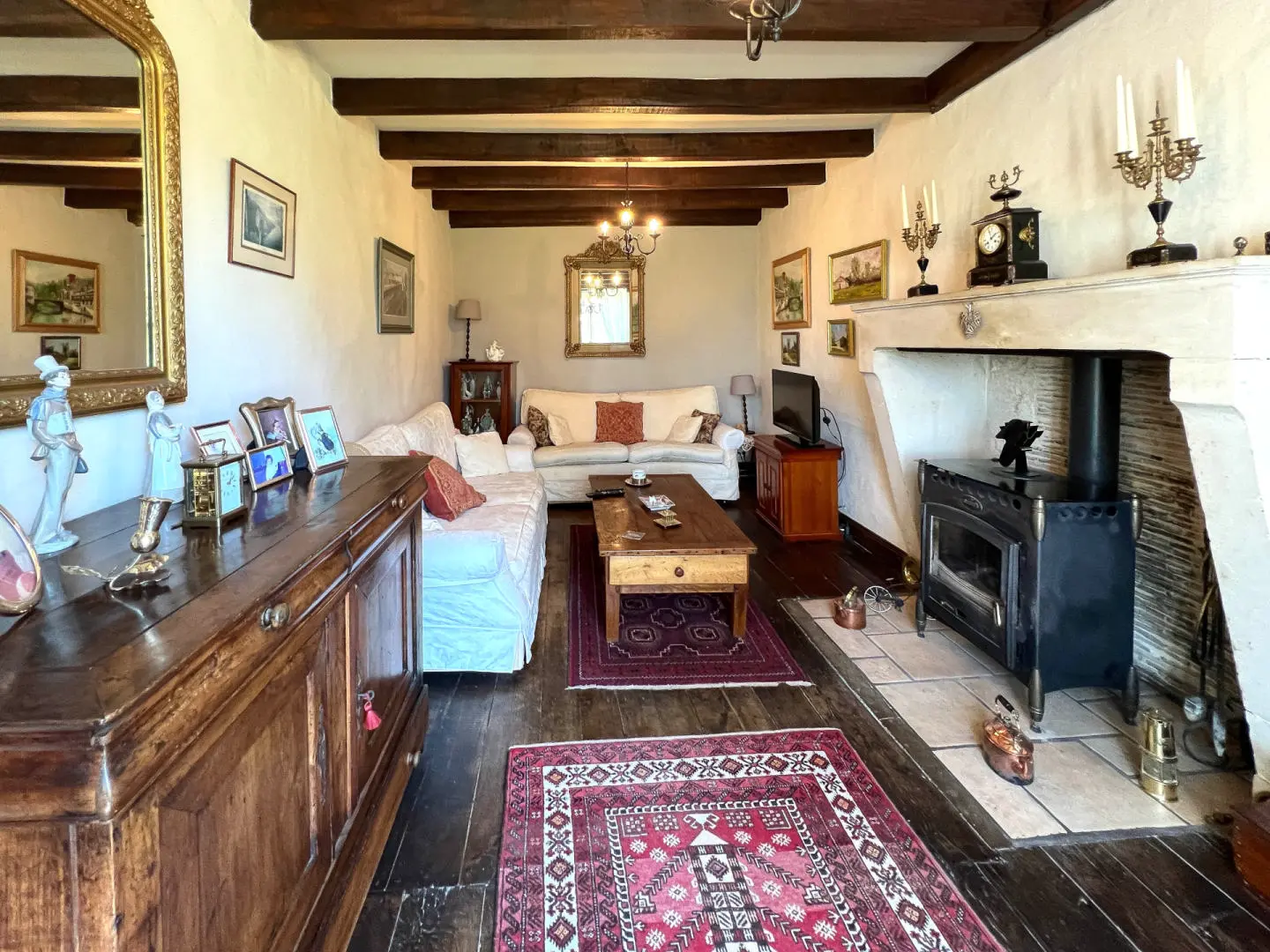Living Room: 18 m² – Wood floor, wood-burner, beams