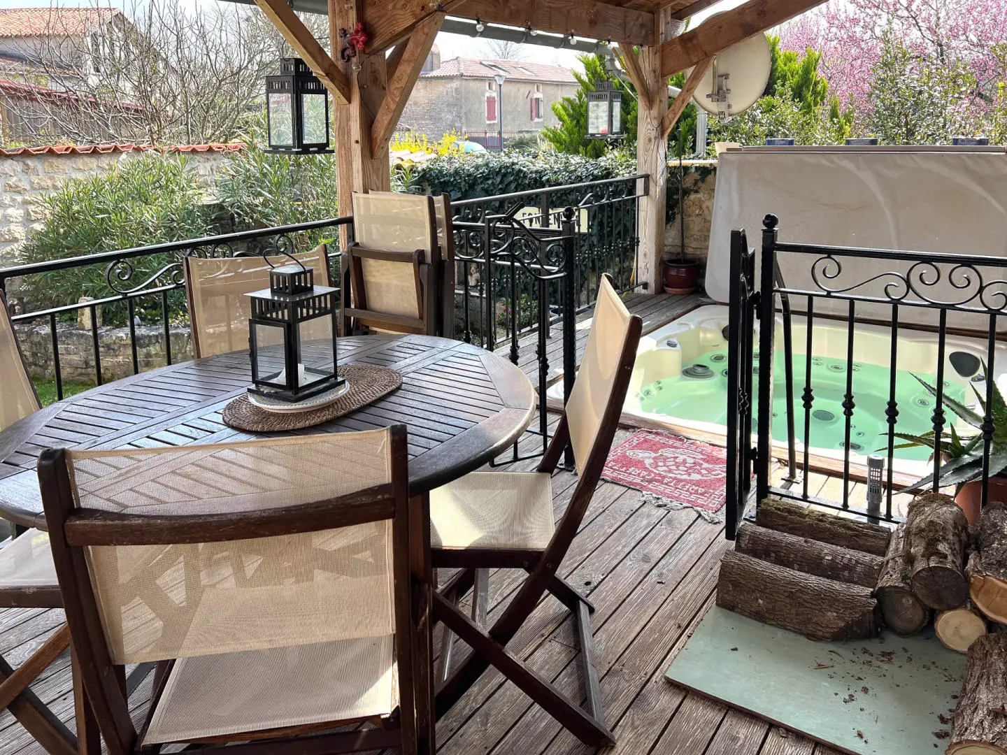 Covered Wooden Terrace: 18 m² – Built-in jacuzzi