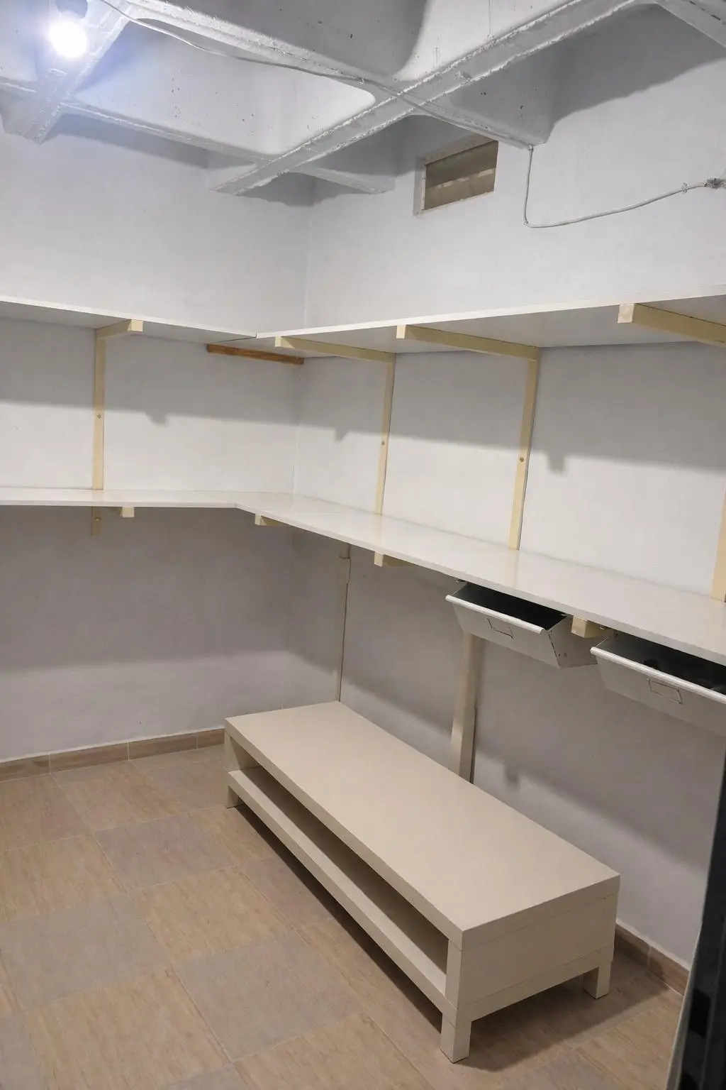 The unit is free from humidity and features a secure and spacious entrance. It is in excellent overall condition and includes functional shelving to optimize the use of the interior space.