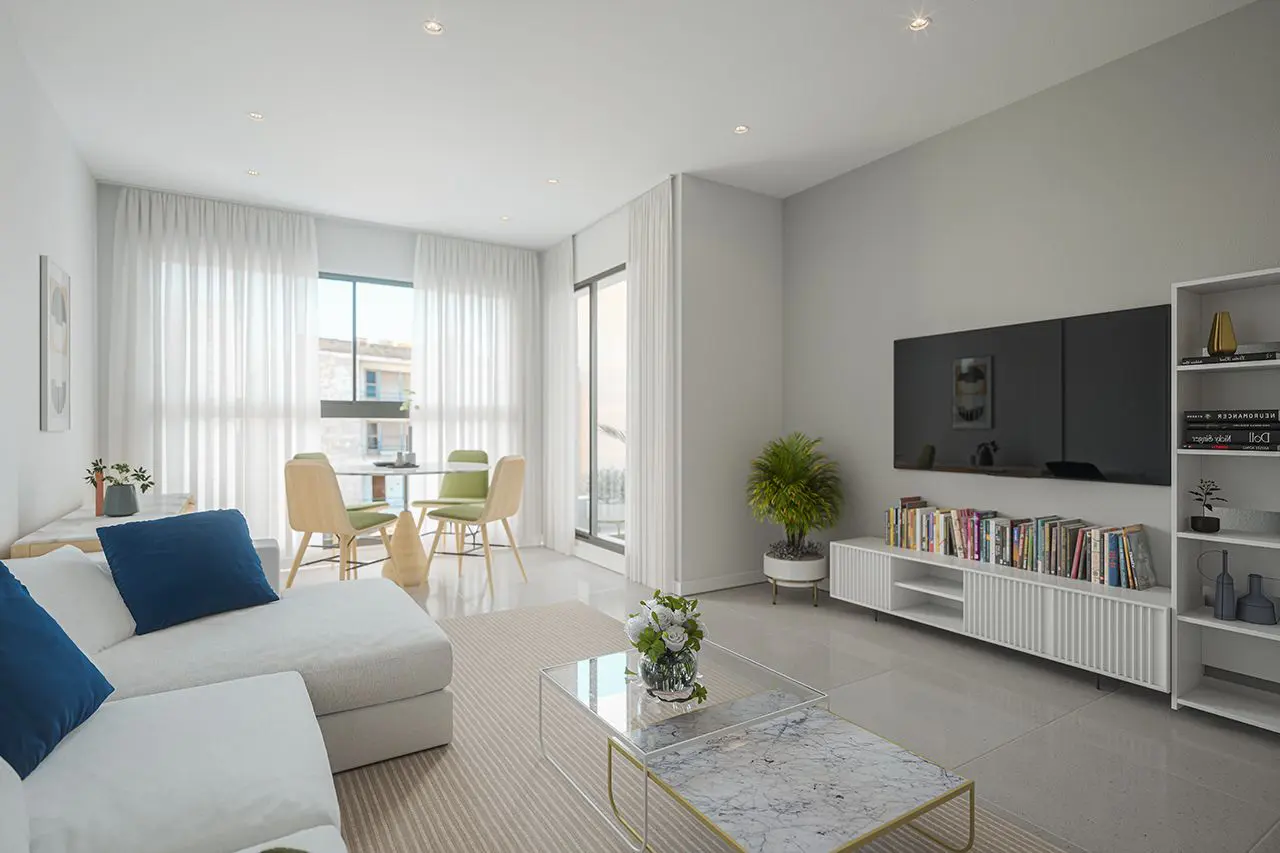The exterior design of this residential complex in Guardamar del Segura harmoniously integrates with the natural surroundings. All homes come with private terraces where you can contemplate the Mediterranean Sea while enjoying the sunny climate. The exclusive solariums in the penthouses are ideal for those seeking privacy while sunbathing. The communal green areas offer a tranquil space for relaxation, and the community pool is perfect for cooling off on warm days.