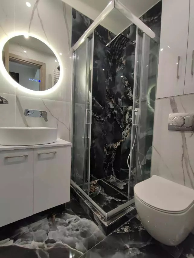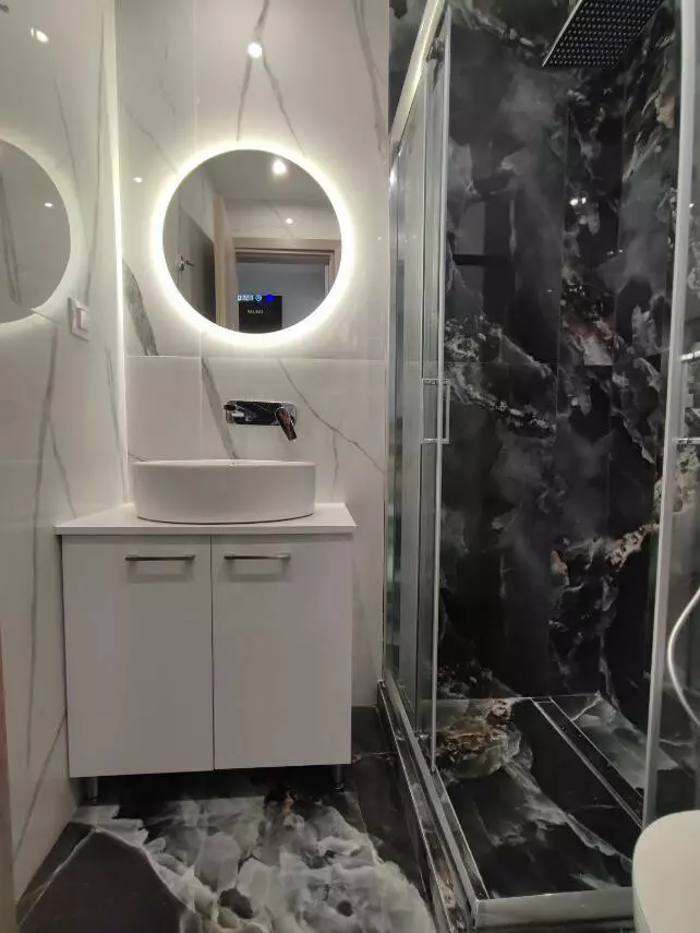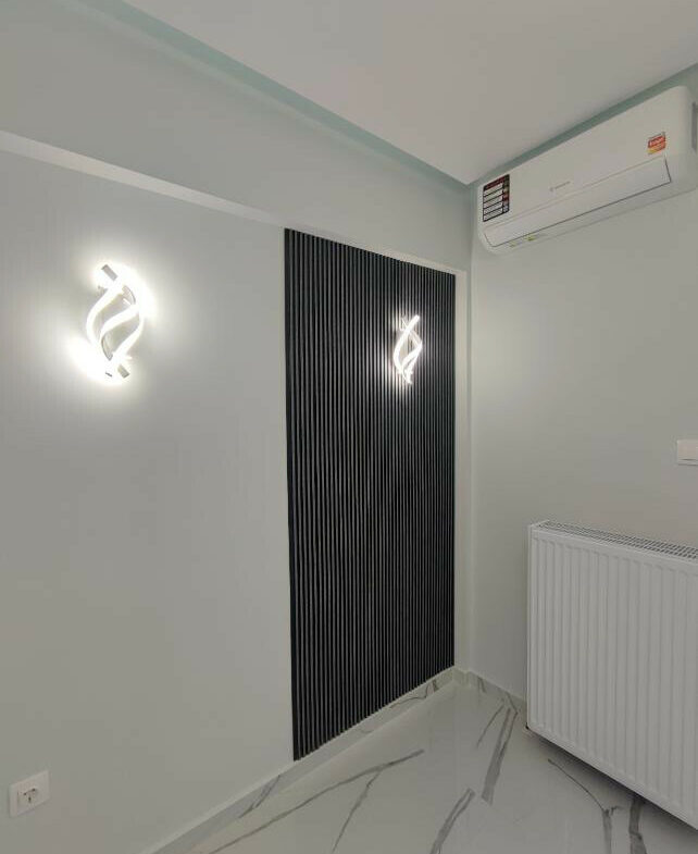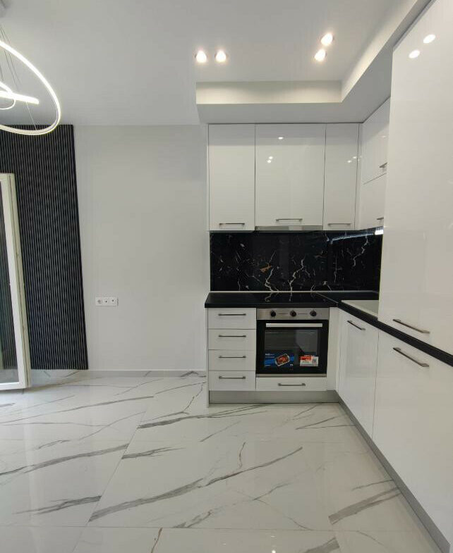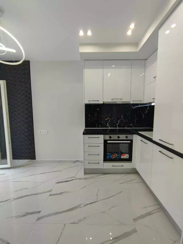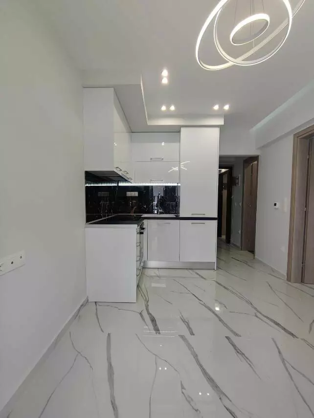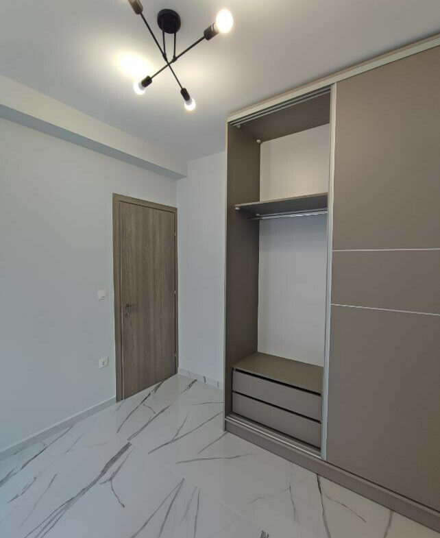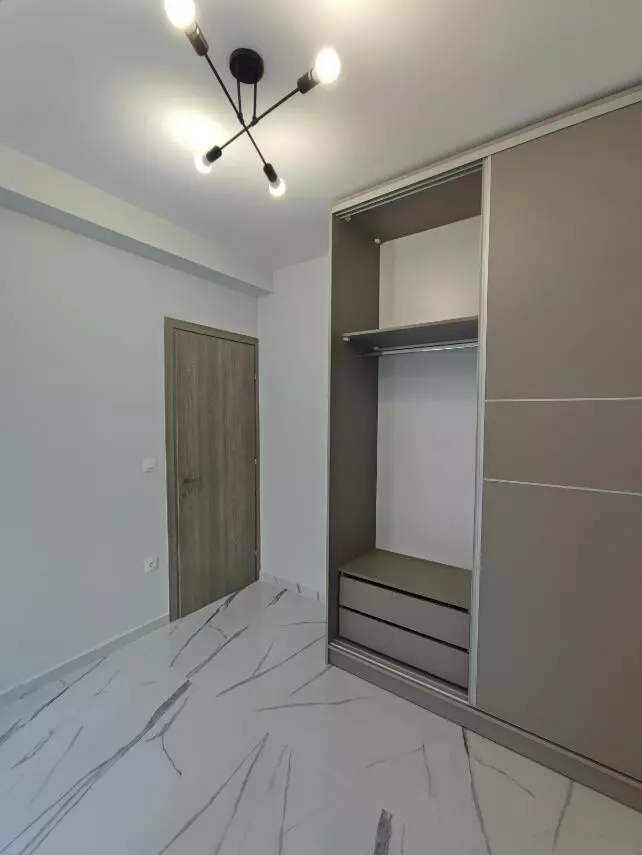 The apartment consists of one bedroom, a living room with an integrated kitchen, and a shower WC. This setup provides a functional space for everyday living. The flat also features a front layout, allowing for natural light and easy accessibility. Air conditioning and heating systems are included, accommodating various weather conditions.