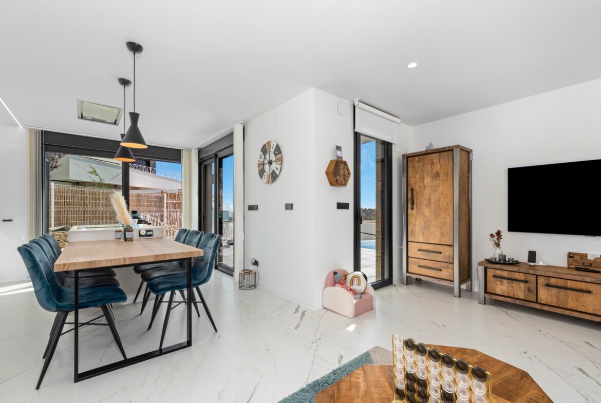 This villa boasts three spacious bedrooms and three modern bathrooms, making it perfect for families or anyone looking to host guests. The open-plan living area is a standout feature, seamlessly blending indoor and outdoor spaces. Imagine lounging in your chic living room while the sunlight dances in, or whipping up a meal in a kitchen that flows into your dining area and out onto the terrace.